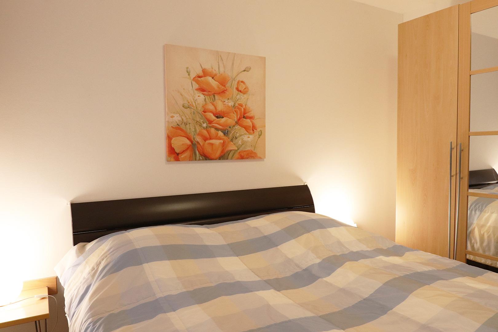 Die 2-Zimmer-Wohnung befindet sich im Hochparterre und ist ca. 55 m² groß. Sie ist für bis zu 4 Personen geeignet und verfügt über ein großes Schlafzimmer mit einem Doppelbett. Der Wohnbereich ist mit einer Sitzgruppe inklusive einer Doppelschlafcouch und einem Esstisch ausgestattet.