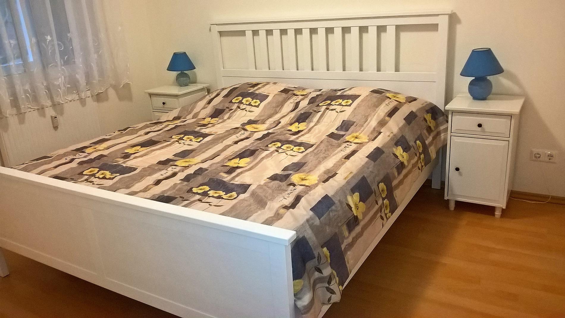 Die großzügige 2-Zimmer-Fewo befindet sich im 1. Obergeschoss. Die Wohnung ist ca. 55 m² groß und für bis zu 2 Personen eingerichtet. Im großen Schlafzimmer finden Sie ein Doppelbett. Der Wohnbereich verfügt über eine Sitzgruppe mit