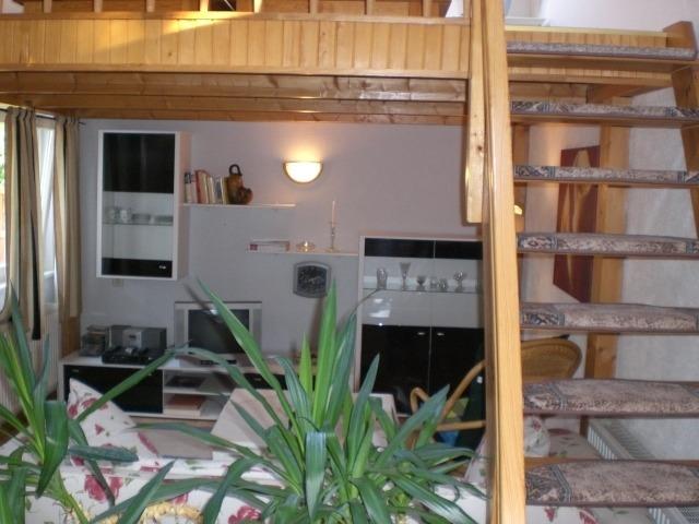 Über dem Wohnbereich befindet sich eine Maisonette, auf der der Schlafbereich untergebracht ist. Er verfügt über 2 Einzelbetten nebst Nachttischchen.
