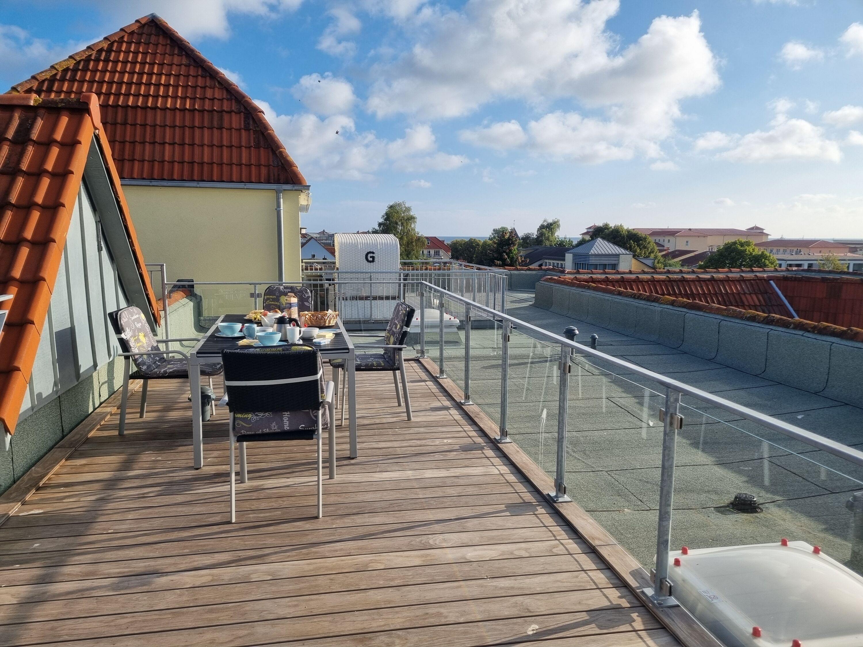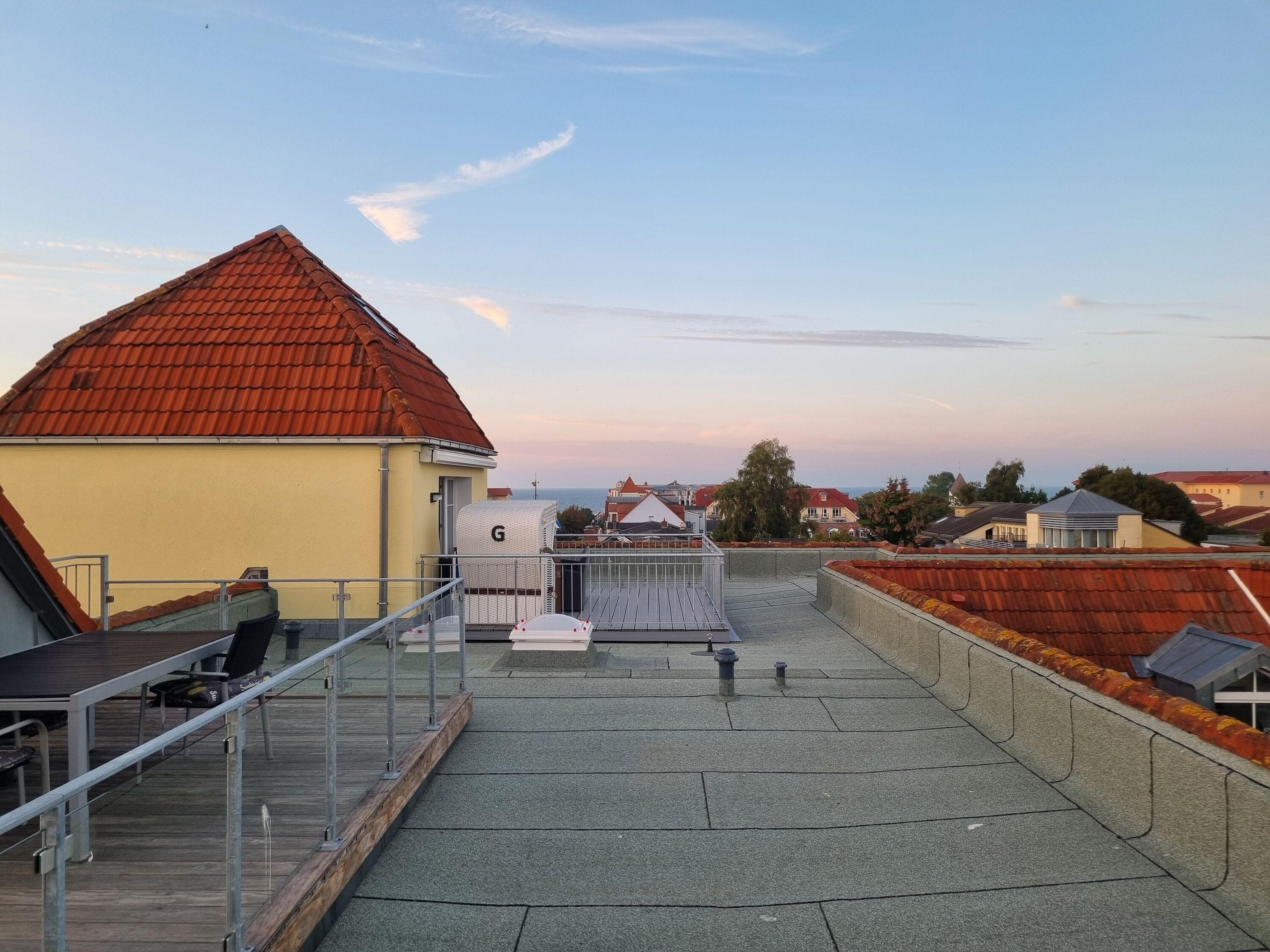 Luxuriöse, helle Ferienwohnung mit Meerblick und Infrarotsauna in Kühlungsborn, verteilt auf drei Etagen mit Fahrstuhl.