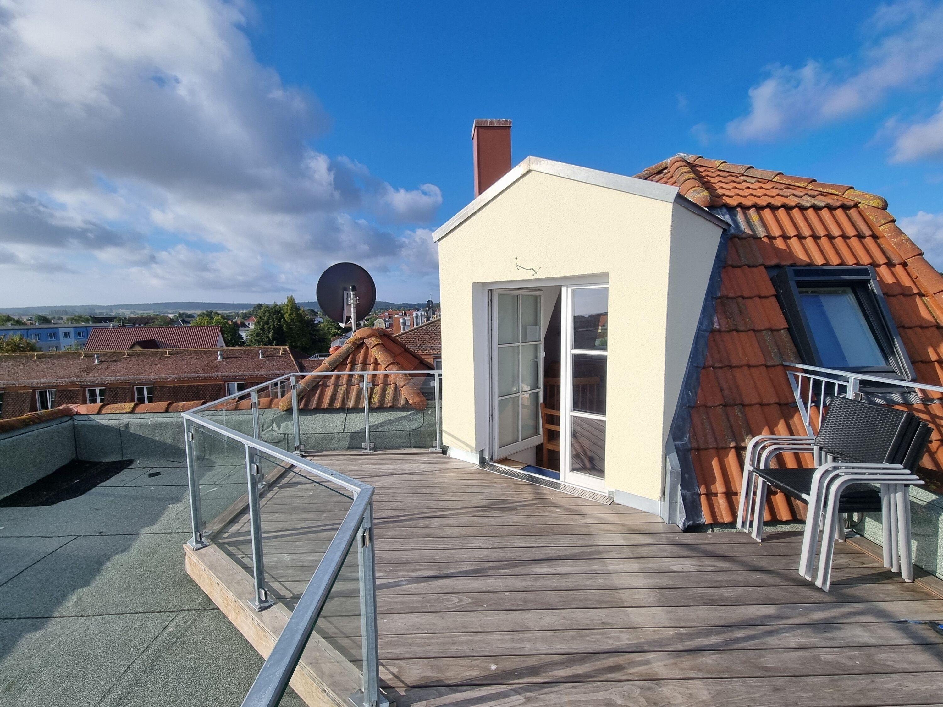 Die sonnendurchflutete Wohnung erstreckt sich über 3 Etagen. Bequem erreichen Sie mit dem Fahrstuhl den Eingangsbereich in der 3. Etage.