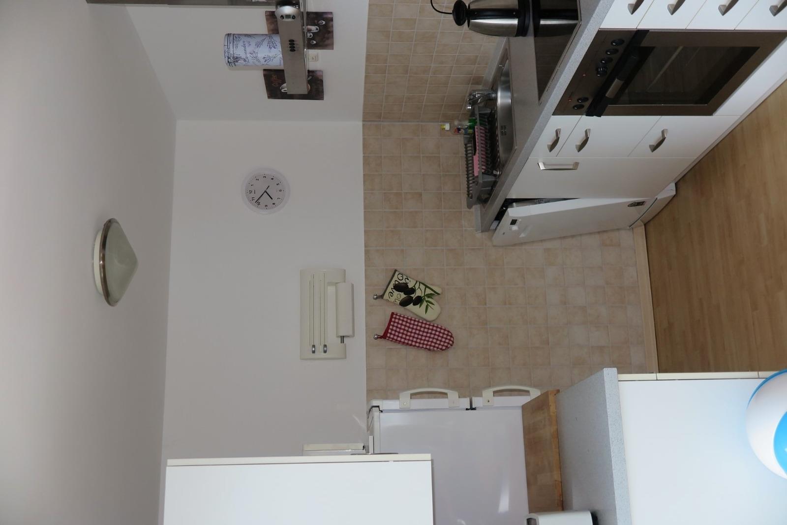Die Wohnung liegt im 1.OG des Hauses mit einem Balkon zur Südseite und bietet für 4 Personen ein Schlafzimmer mit Doppelbett und zwei Einzelbetten im zweiten Schlafzimmer.