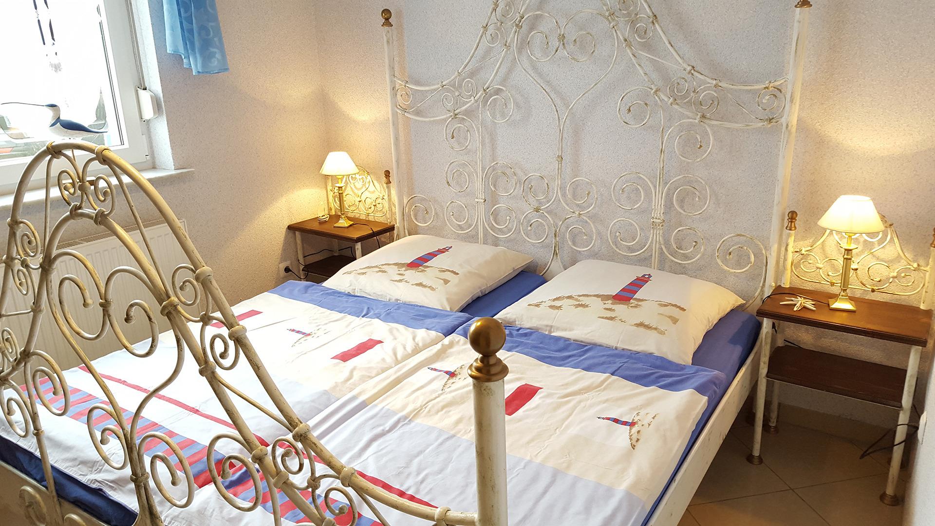 Das Schlafzimmer ist mit einem Doppelbett ausgestattet.