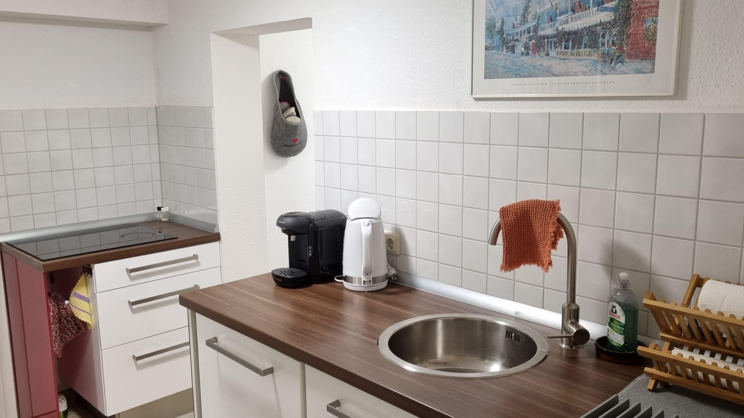 Die Küche ist mit einem 4-Zonen Kochfeld ausgestattet um sich kleine Mahlzeiten zubereiten zu können.