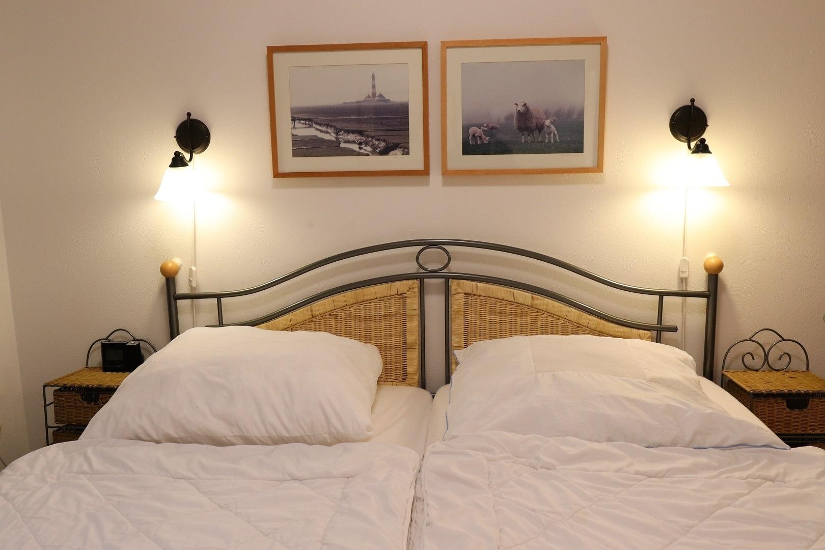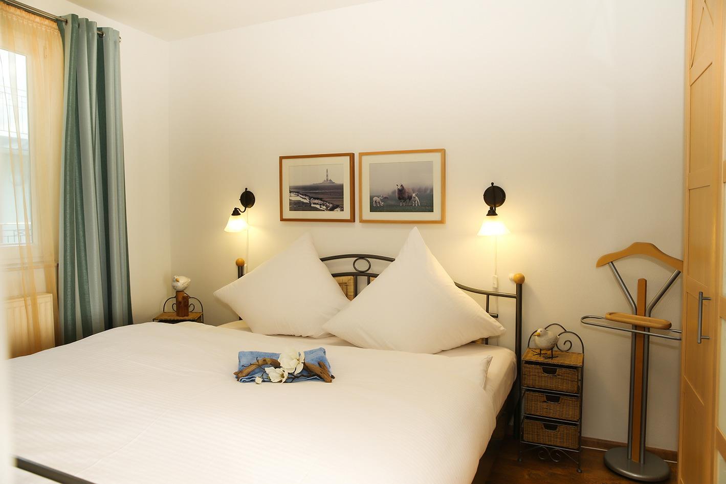Das kleine, behagliche Schlafzimmer sorgt für einen ruhigen Schlaf: Doppelbett (Bettzeug auch für Allergiker), Verdunkelungsgardinen, ausreichend Stauraum und für Ihre Wertsachen ein Safe.