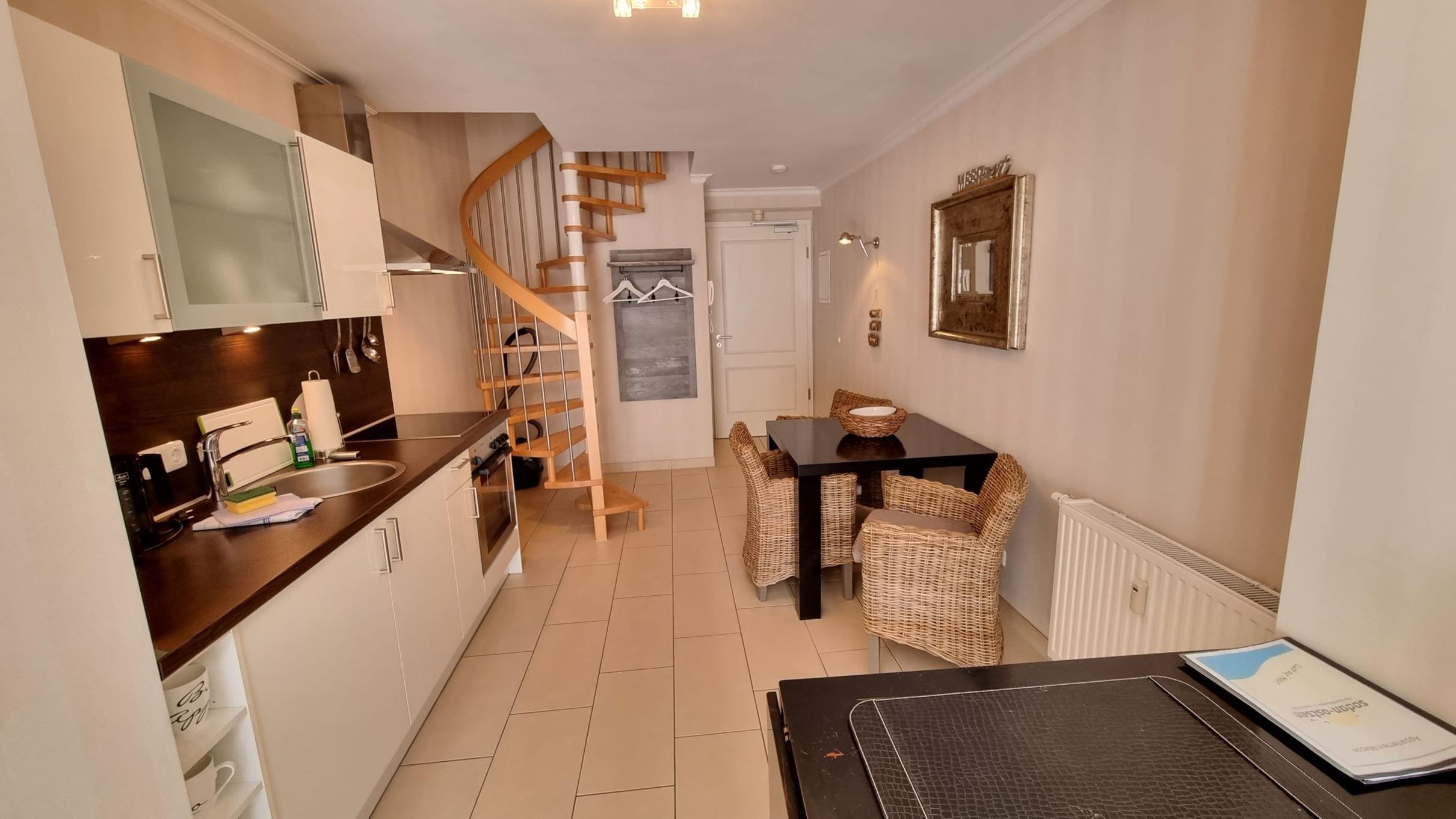 Der Wohnbereich im EG bietet eine Sitzgruppe, eine Einbauküche mit Backofen und 4-Platten-Ceranfeld. Zur technischen Ausstattung gehören ein Flachbild-TV und eine HiFi-Anlage.