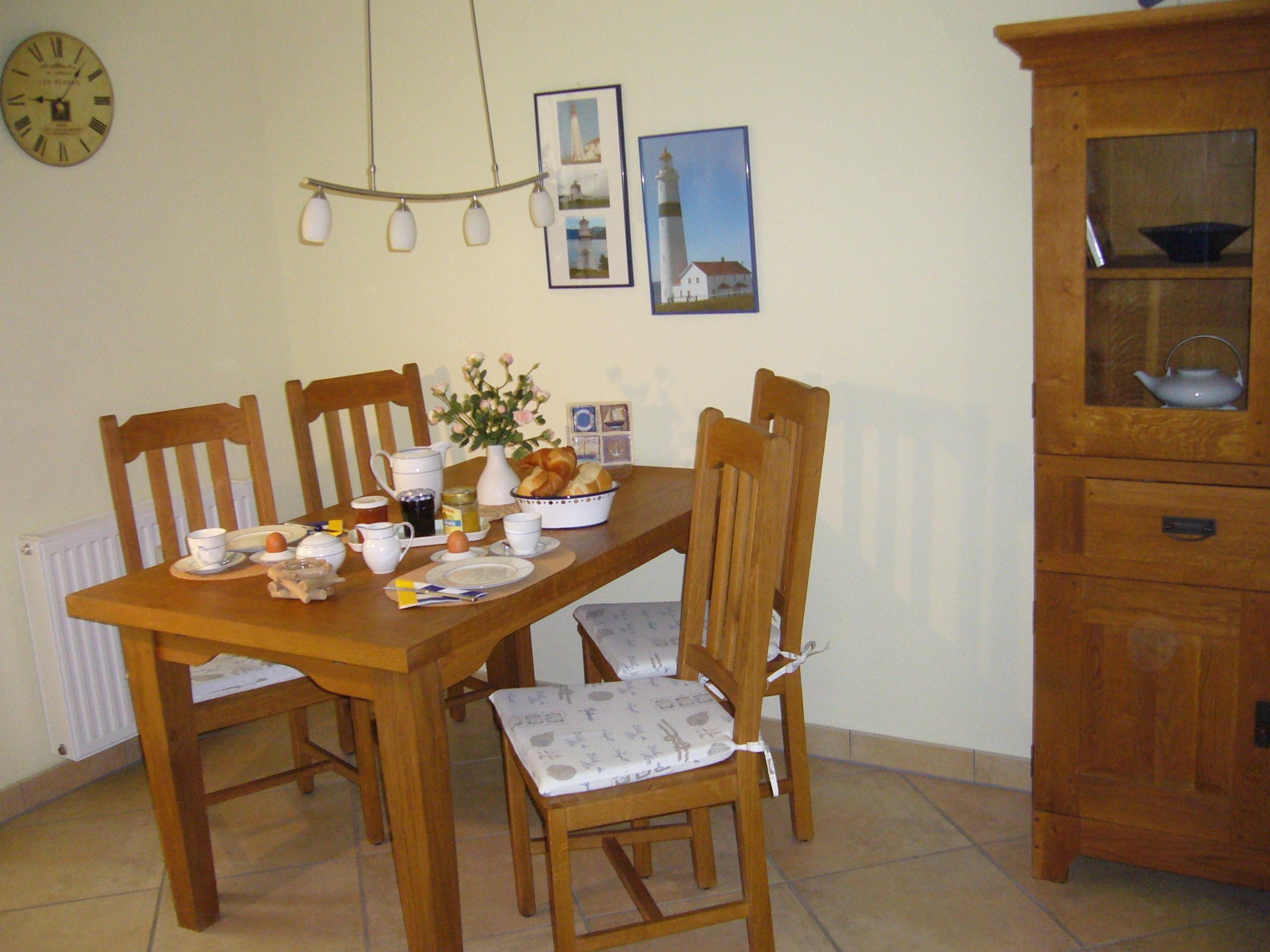 Die integrierte Küche ist u.a. mit Geschirrpüler, 4-Platten-Herd mit Backofen, Mikrowelle, Kaffeemaschine, Wasserkocher und Toaster ausgestattet. Ein Esstisch und 4 Stühle laden zum gemütlichen Speisen ein.
