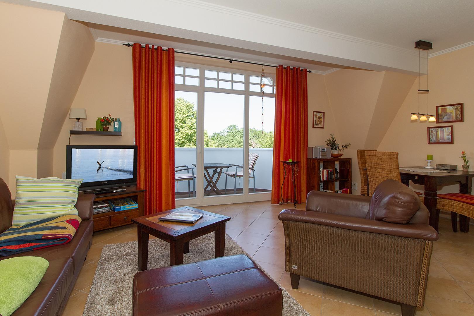 Moderne 2-Zimmer-Ferienwohnung mit Balkon und saisonalem Meerblick in Kühlungsborn.