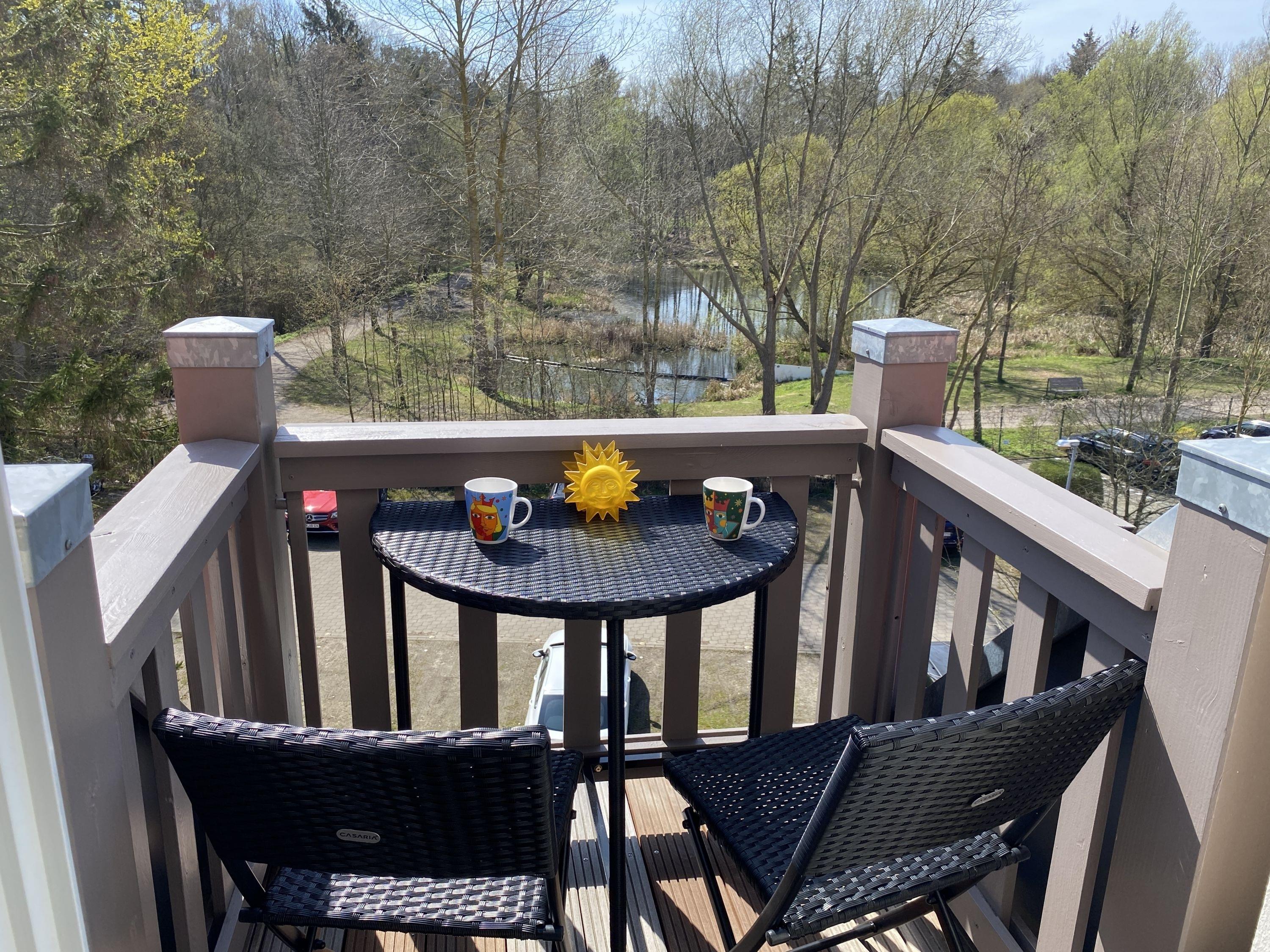 Von dem kleinen Balkon vor dem Schlafzimmer genießen Sie Ihren Frühstückskaffee mit tollem Blick auf den 133 Hektar großen Stadtwald inklusive Stadtsee, der sich direkt vor dem Fenster präsentiert.