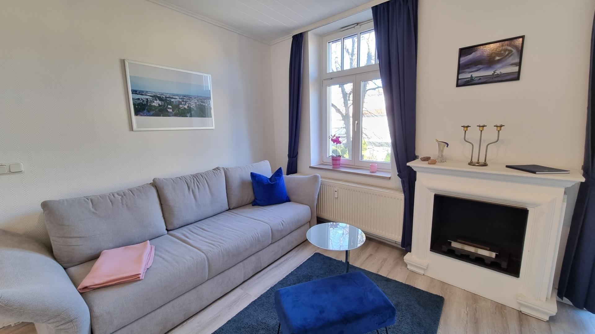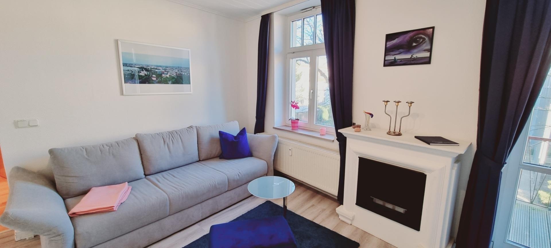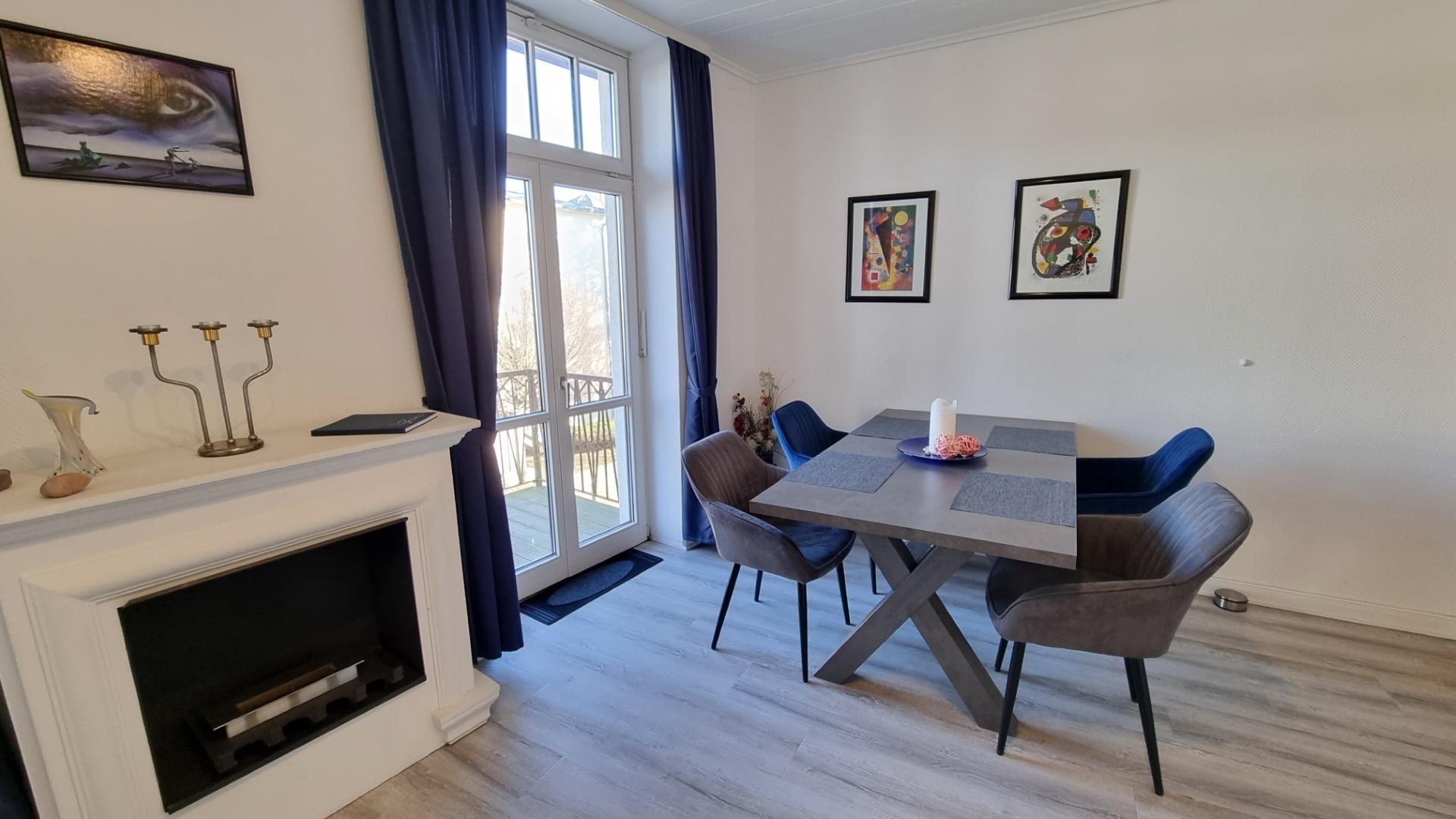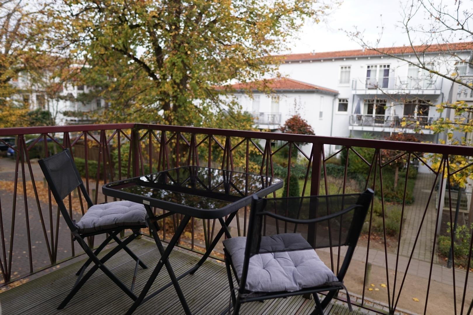 Moderne 2-Zimmer-Ferienwohnung mit Balkon und Ethanol-Kamin in Kühlungsborn, ideal für entspannte Tage am Meer.