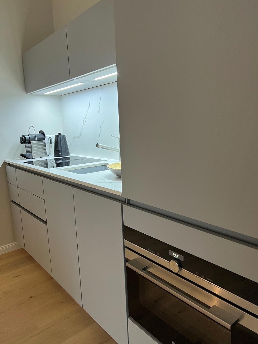 Moderne Einbauküche mit 4-Zonen-Induktionsherd, Backofen und Geschirrspüler