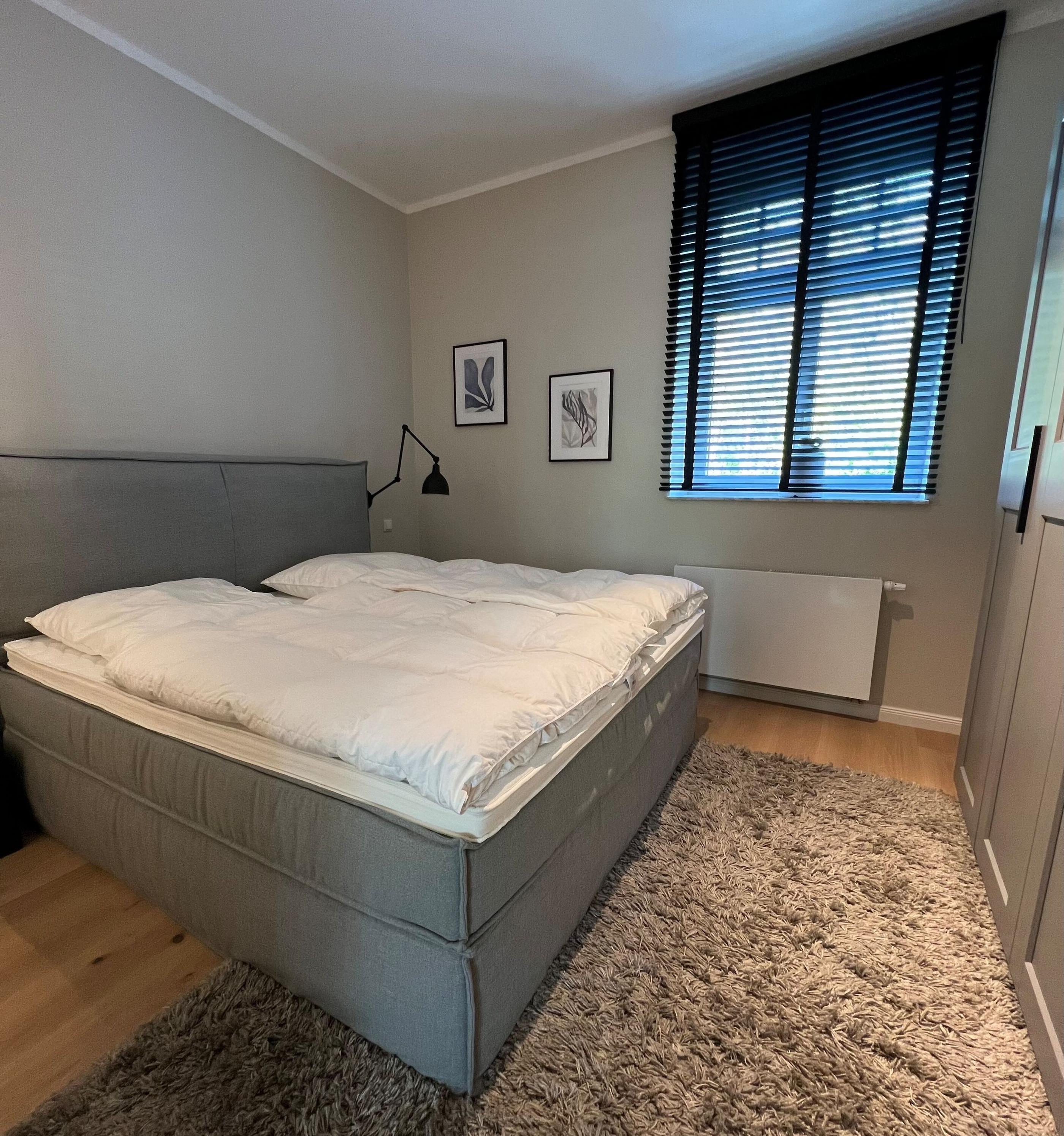 Schlafzimmer mit komfortablem Boxspringbett und viel Stauraum