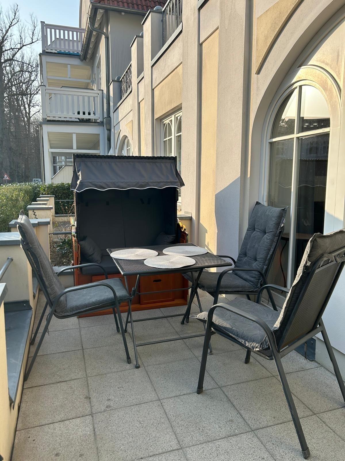 Gemütliche Ferienwohnung mit Terrasse und Strandkorb in Kühlungsborn, ideal für bis zu 4 Personen.