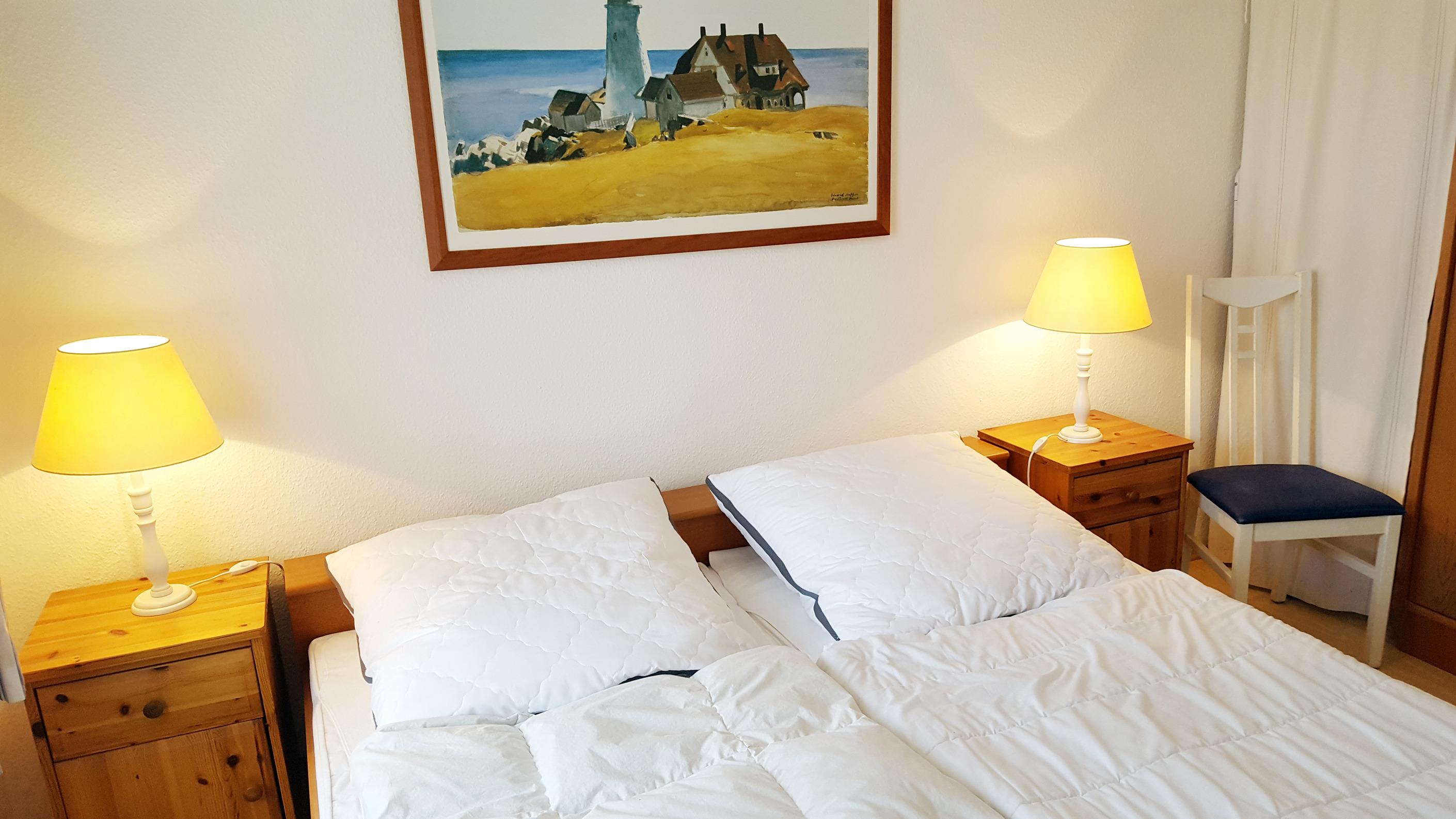 Im Schlafzimmer finden Sie ein Doppelbett. Ein Duschbad/WC ergänzt die Fewo.