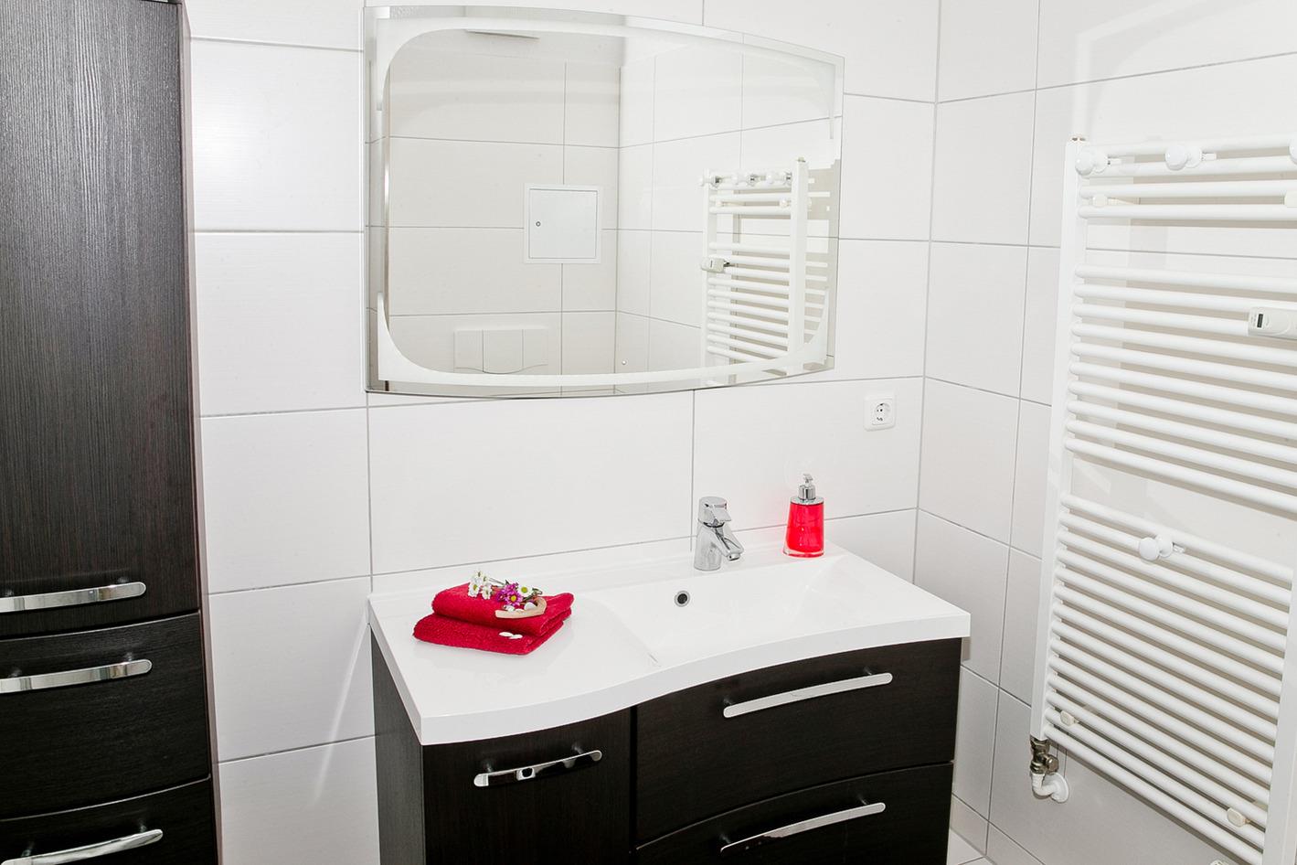 Das Bad mit Dusche und WC rundet die Ferienwohnung ab.