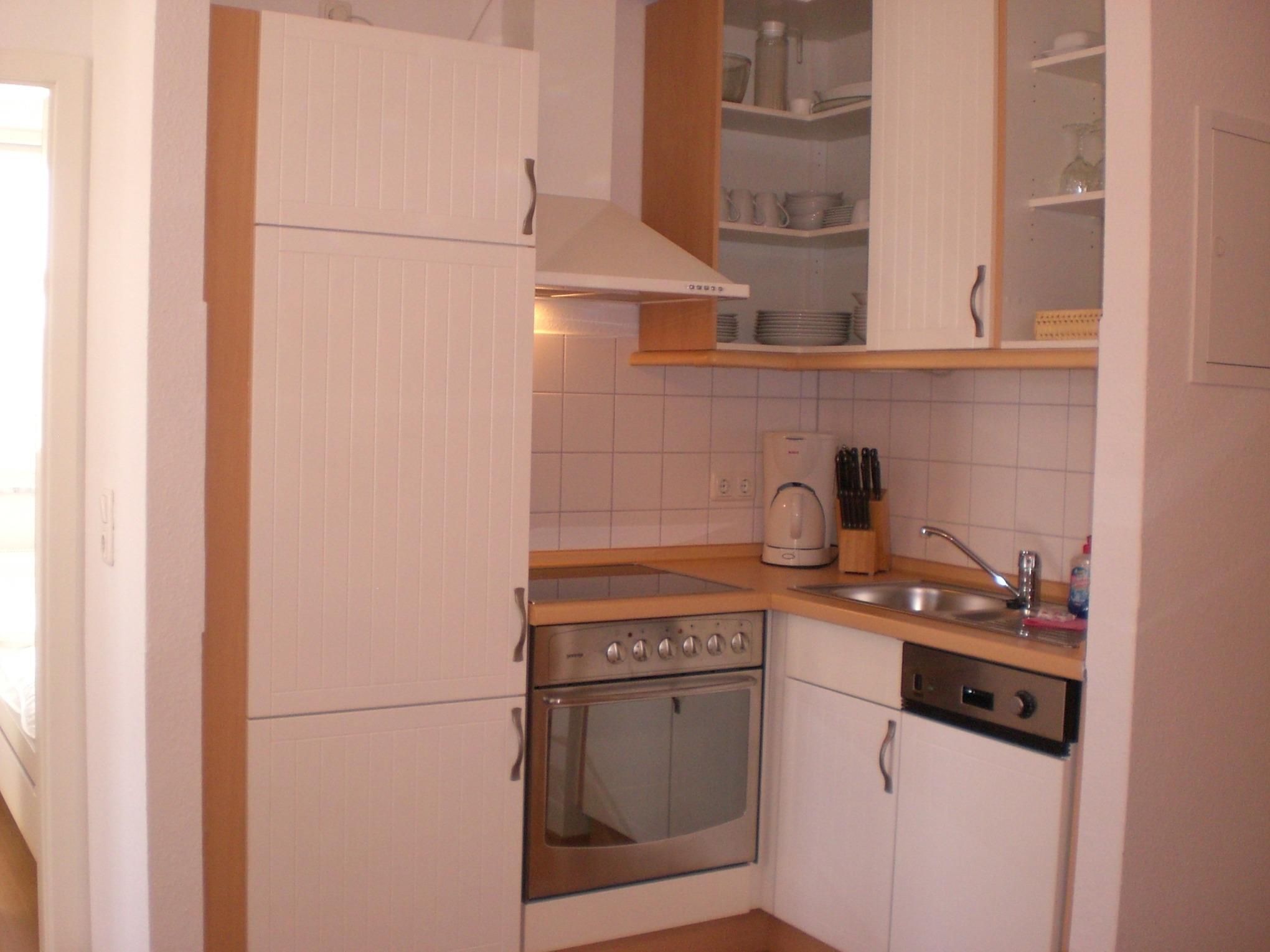 Der ansprechende helle Wohnbereich mit Zugang zu beiden Balkons verfügt über eine Sitzgruppe mit Flachbildschirm und Hifi-Anlage, um einen erlebnisreichen Urlaubstag entspannt ausklingen zu lassen. Angrenzend befindet sich der Essbereich mit einem Tisch für 4 -6 Personen mit moderner komplett ausgestatteter Pantryküche inklusive Geschirrspüler und Ceranherd mit Backofen.