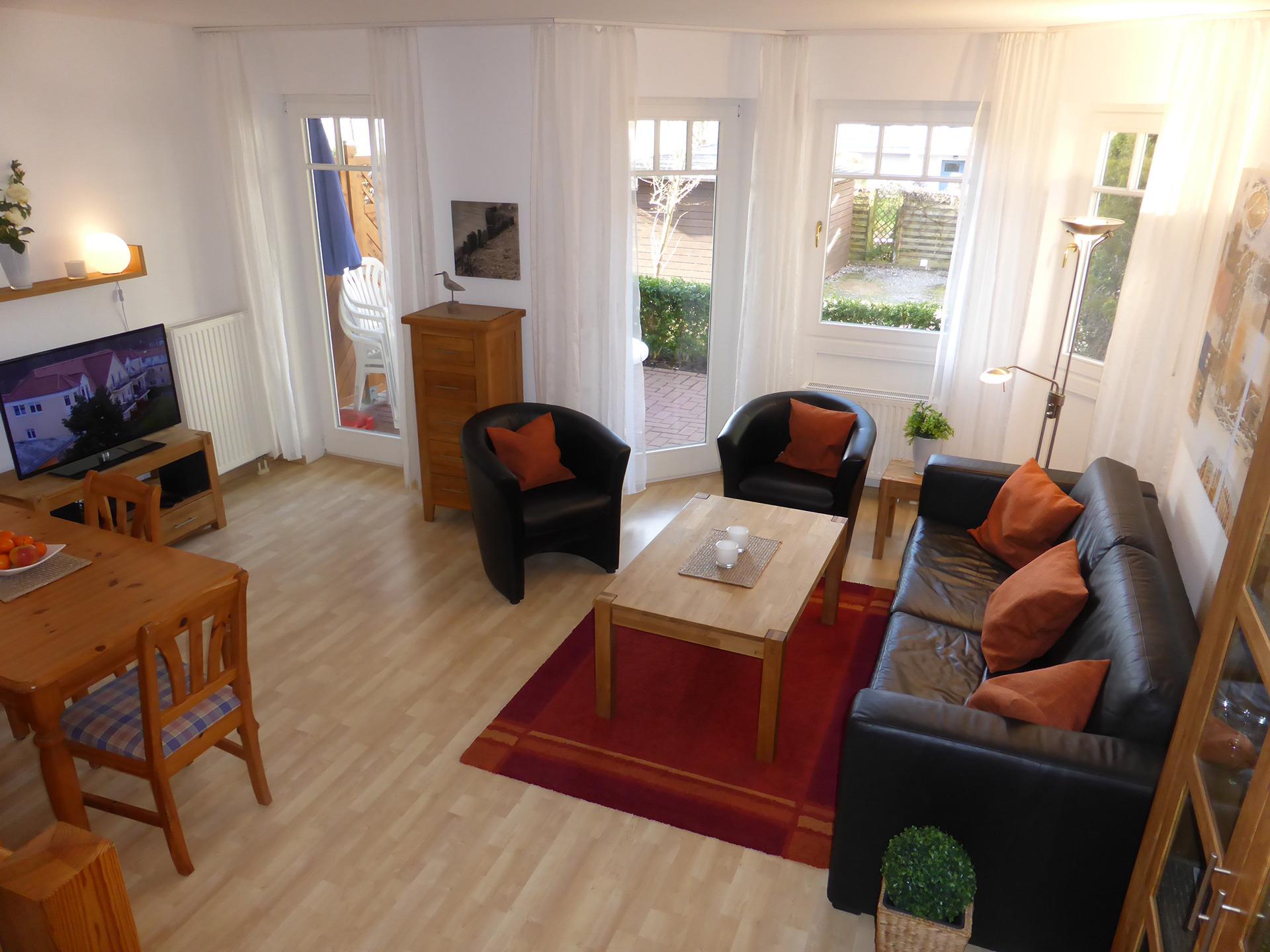 Die Ferienwohnung befindet sich im Hochparterre und verfügt über eine Terrasse. Sie bietet ausreichend Platz für einen entspannten Urlaub.