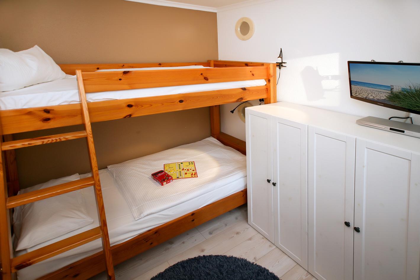 Die zwei Schlafzimmer sind mit einem Doppelbett bzw. einem Etagenbett ausgestattet. Das kleinere Schlafzimmer ist mit einem zusätzlichem TV-Gerät und einem DVD-Player ausgerüstet.