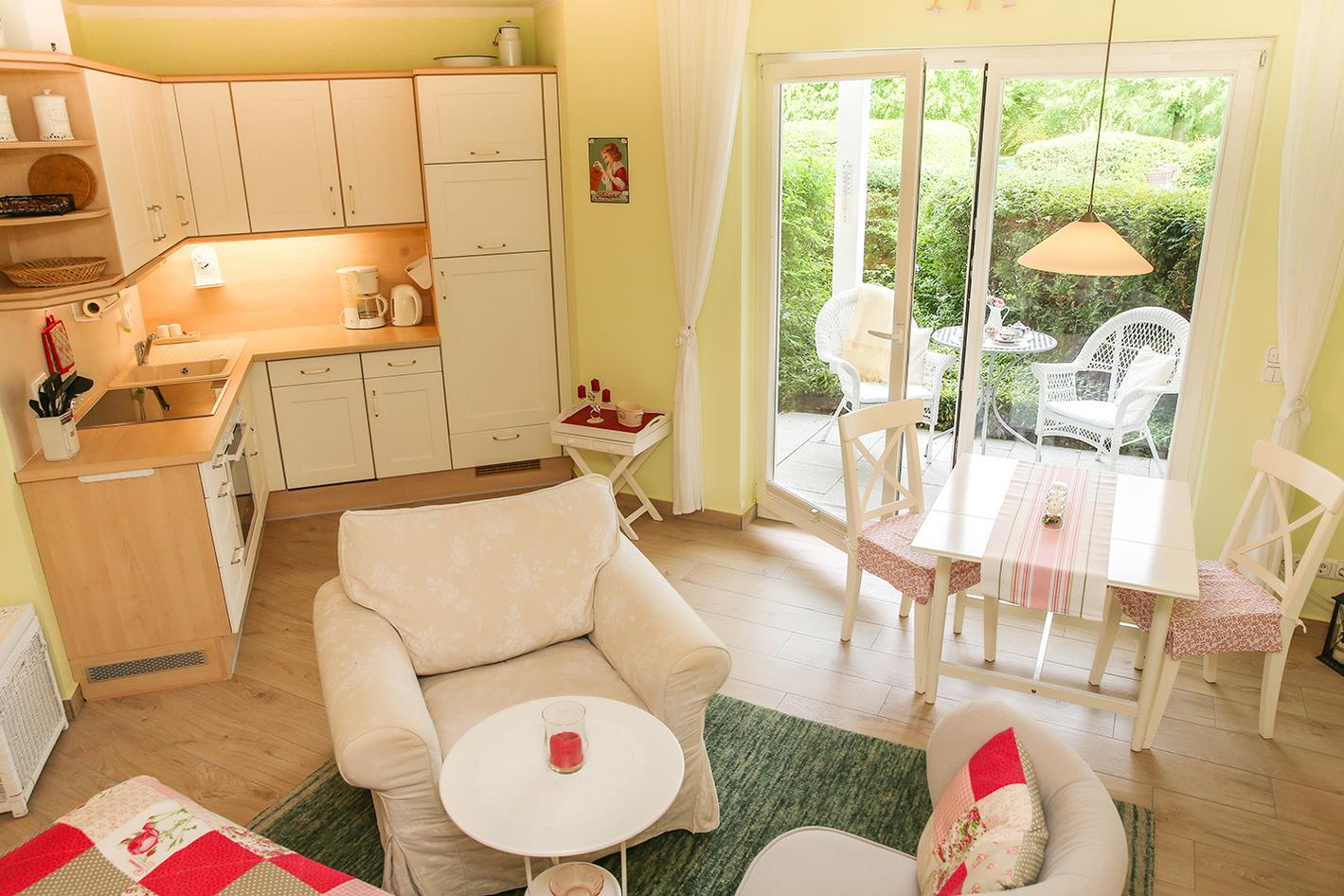 Gemütliches Studio mit Terrasse, moderner Küche und kostenfreiem WLAN in Kühlungsborn, ideal für erholsame Tage am Meer.