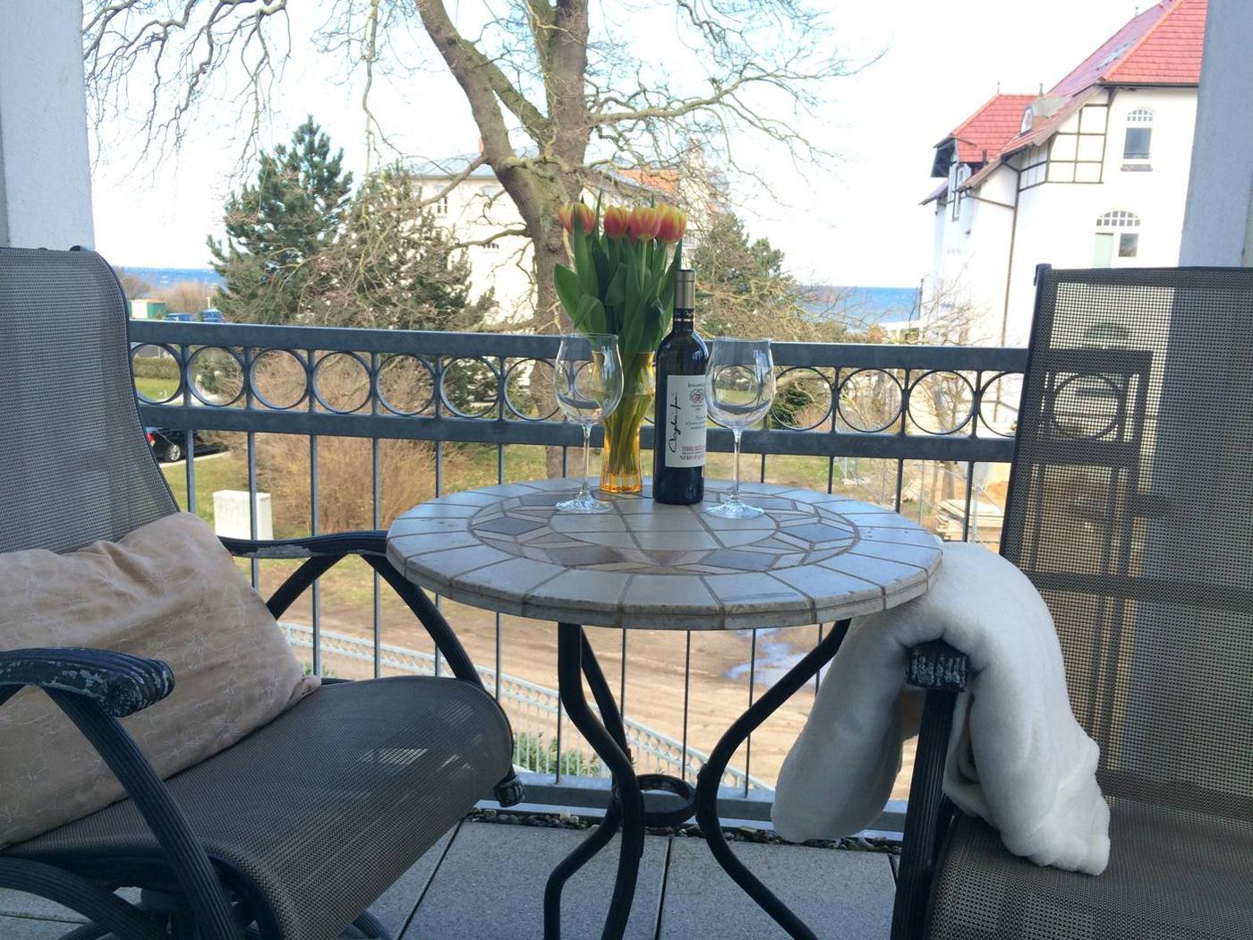 Der große Nord-Ost-Balkon bietet einen wunderschönen Ausblick zur Ostsee.