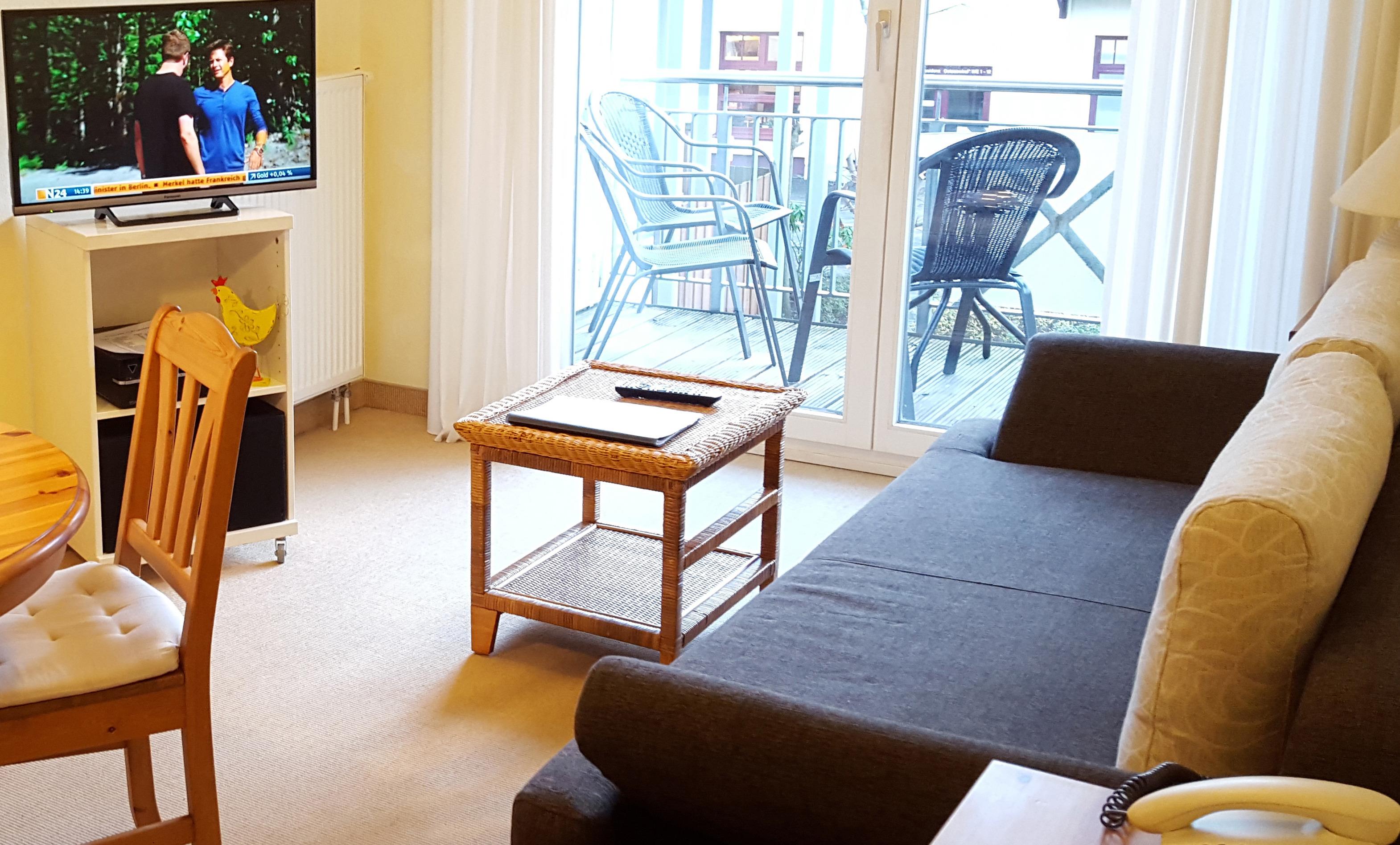 Die Wohnung befindet sich im Haus 1 der Anlage im 1. Obergeschoss in ruhiger Lage. Sie ist für 3 Personen ausgestattet.