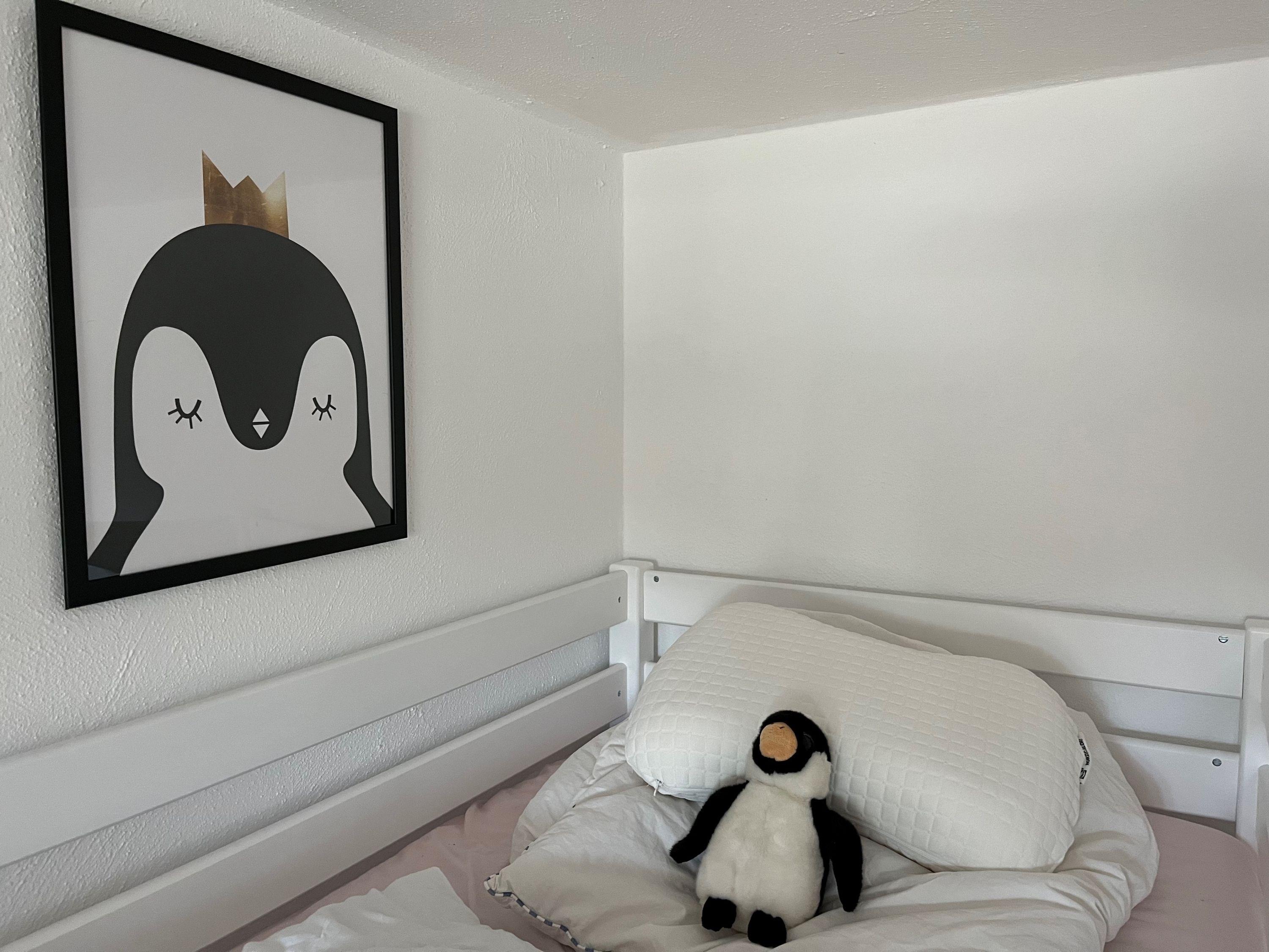 Im Schlafzimmer befindet sich ein Etagenbett mit einer unteren Liegebreite von 1,40m. Das Bett kann mit 320 kg belastet werden (180 kg auf unterer Etage und 140 kg auf oberer Etage).