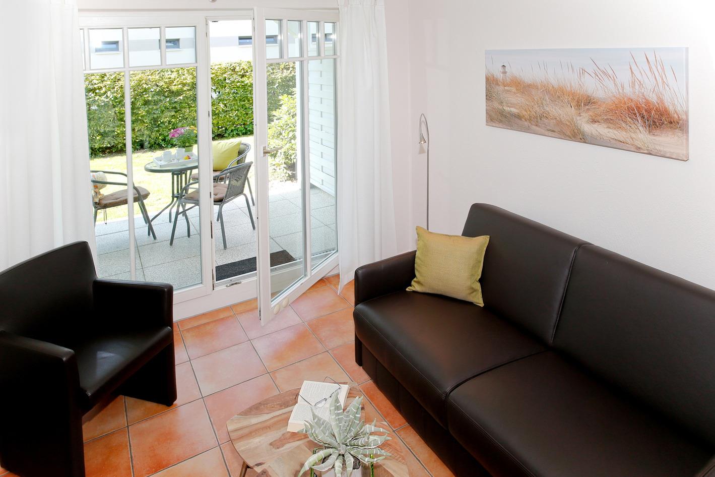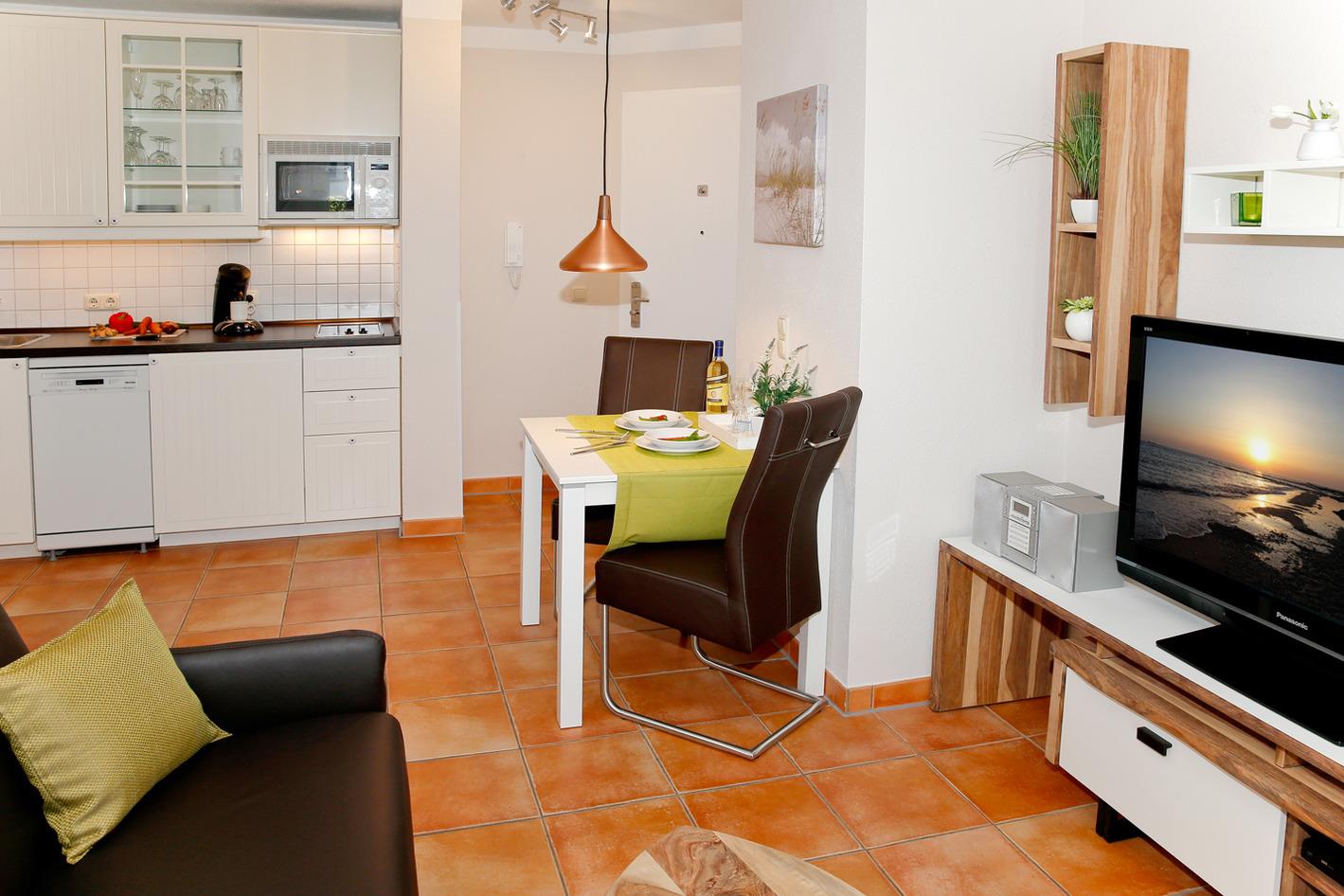 Die Wohnung befindet sich im Haus 2 der Anlage im Erdgeschoss und ist für 3 Personen ausgestattet.