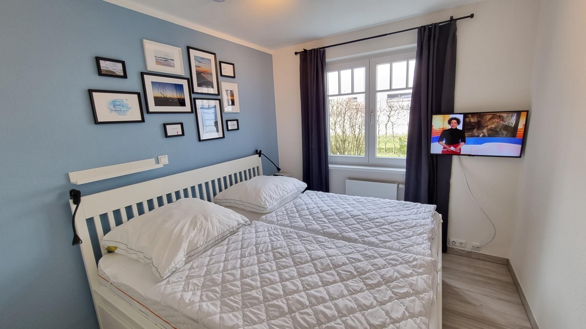 Das Schlafzimmer mit Doppelbett (hochwertige Gel-Federkernmatratzen) bietet 2 Schlafmöglichkeiten, die Matratzen sind beidseitig nutzbar (unterschiedliche Härtegrade) uns sorgen für einen erholsamen Schlaf. Der große Kleiderschrank bietet ausreichend Platz für Ihre Kleidung.