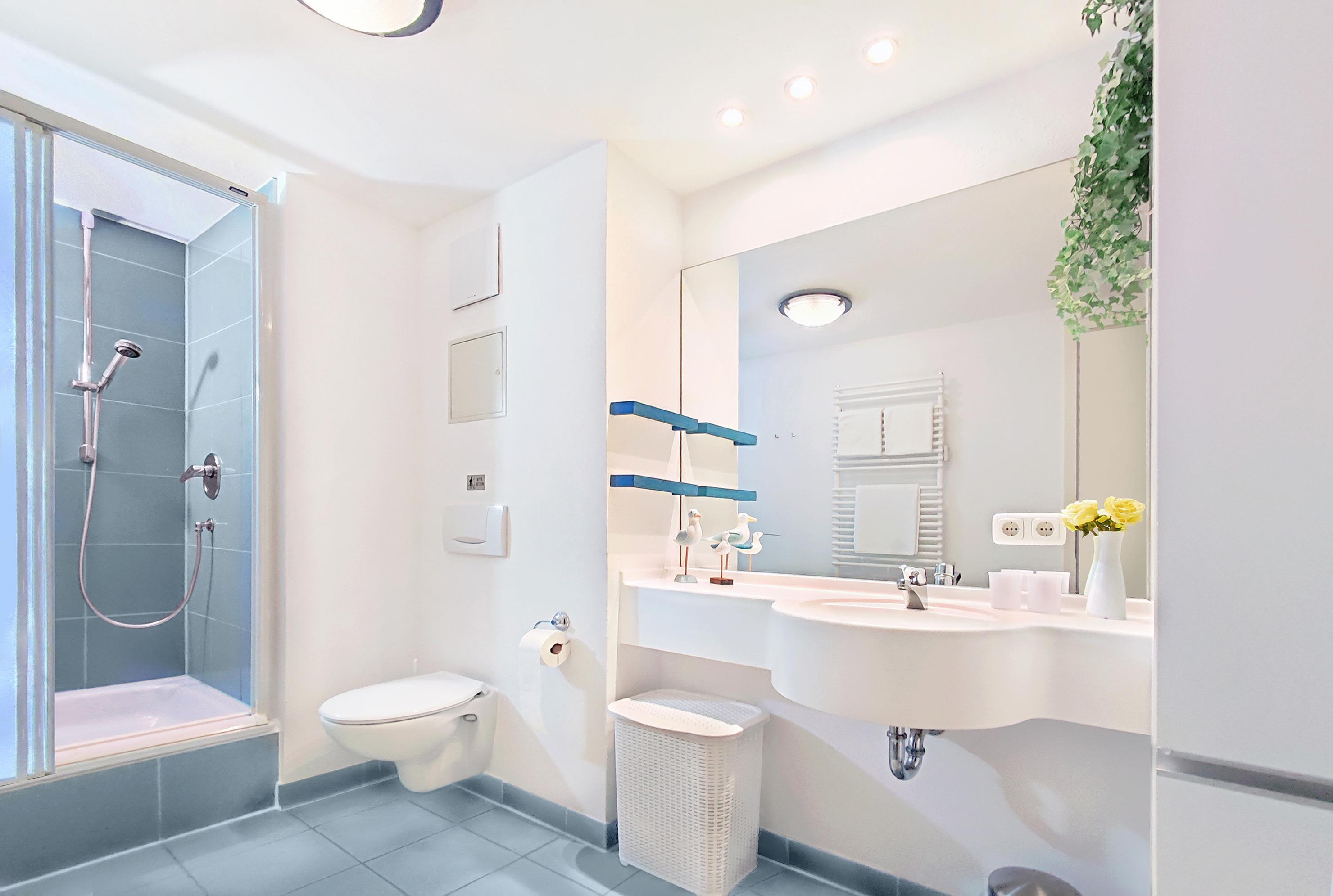 Ein Dusch-Bad/WC sowie ein Gäste-WC ergänzen die Ferienwohnung.