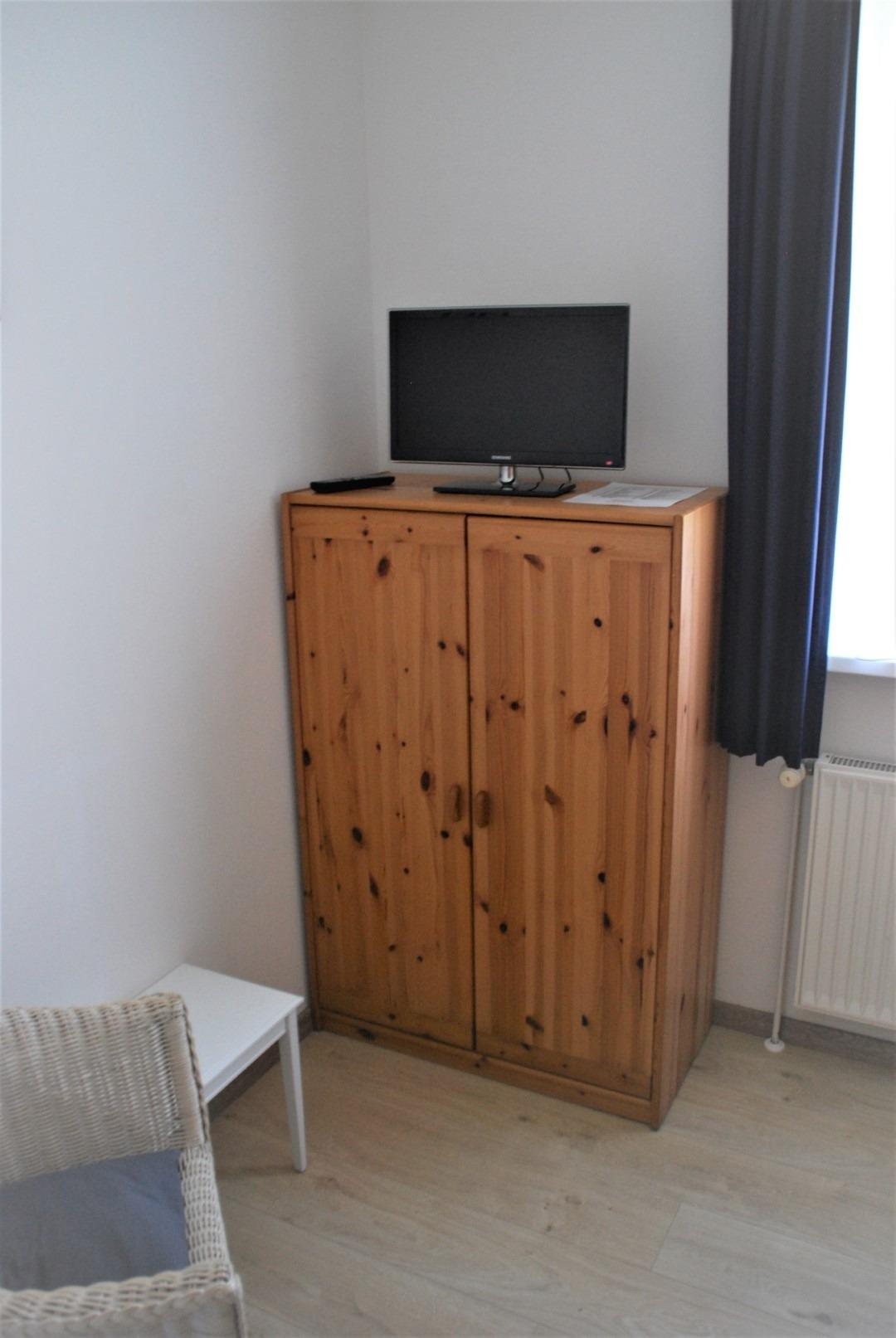 Zur technischen Ausstattung im WZ gehört ein Flachbildfernseher und DVD-Player. Im Bad ist eine Dusche mit niedrigem Einstieg.