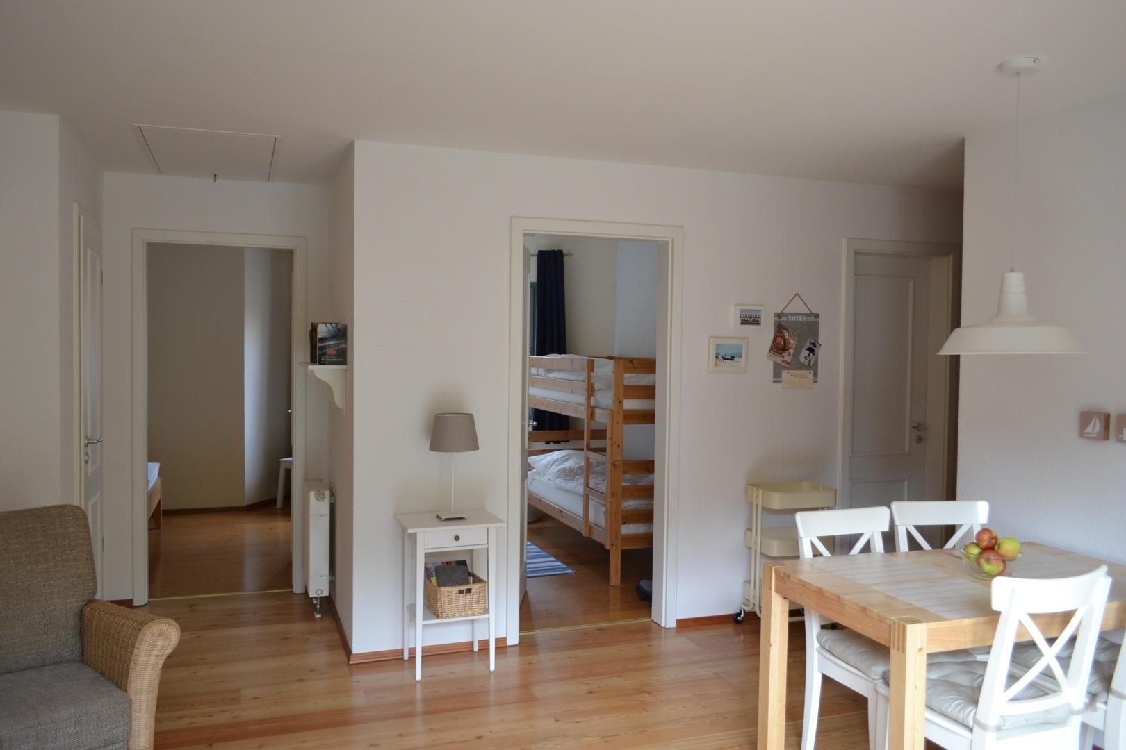 Das Schlafzimmer bietet ein Doppelbett (160 x 200 cm) zum Schlafen, das zweite Schlafzimmer ein Etagenbett.