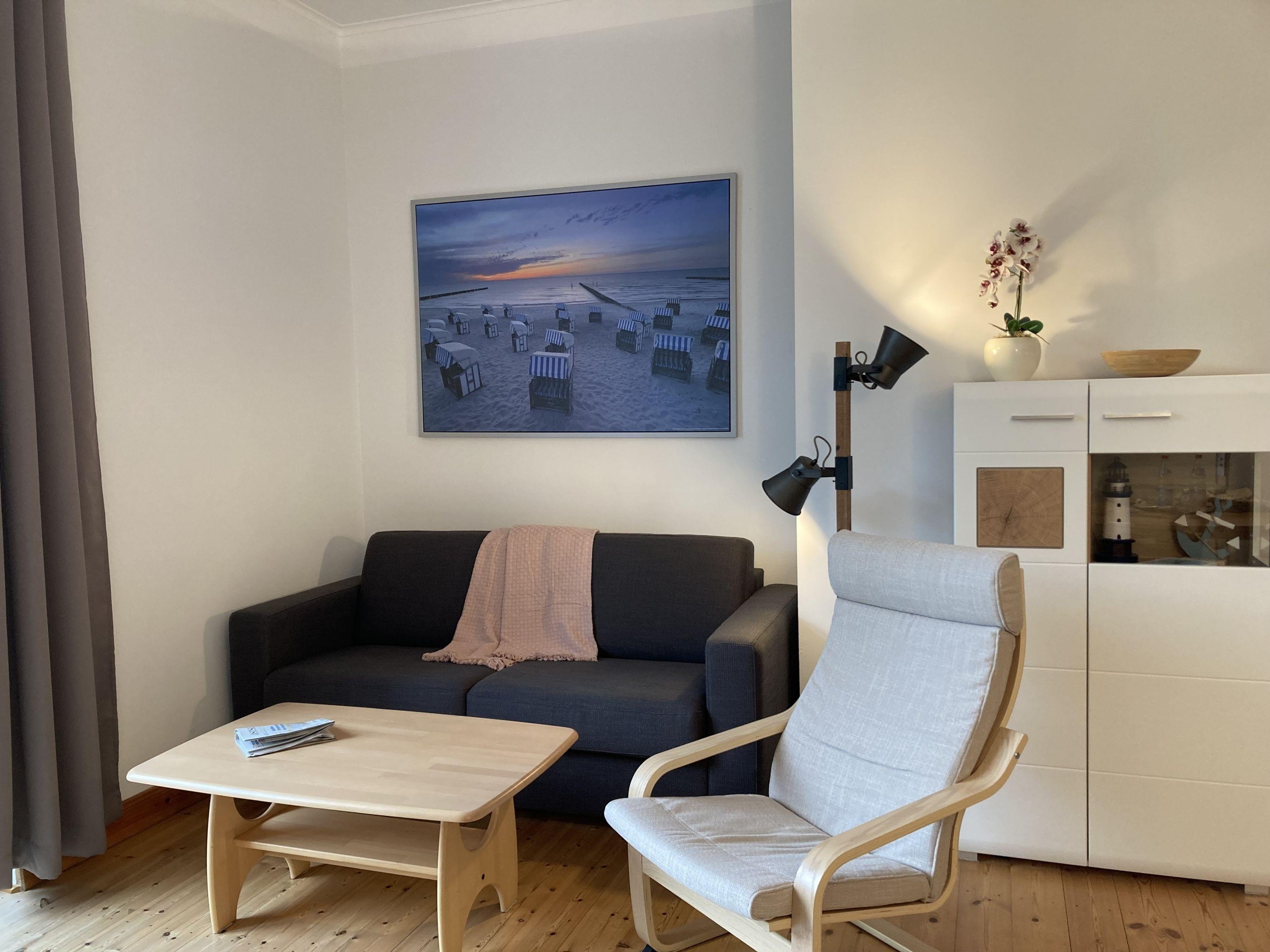 Die ca. 50 qm große Wohnung ist im 1. Obergeschoss und für bis zu 4 Personen eingerichtet. Die Wohnung liegt zur ruhigen Südseite und verfügt über einen Balkon. Nach ein paar Schritten durch den Stadtwald sind Sie am Strand und im
