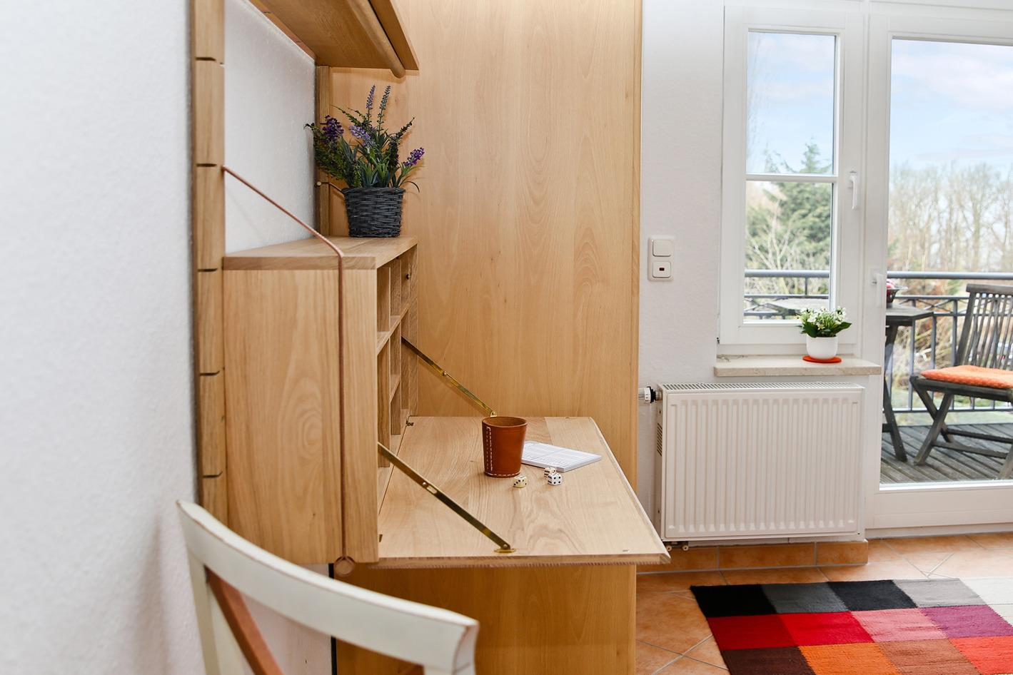 Den überdachten Stellplatz Nr. 19 direkt hinter dem Haus, können Sie bei Bedarf nutzen (max. Einstellhöhe 2 m). Die Loggia nach Osten lädt Sie zum Frühstück beim Sonnenaufgang ein.