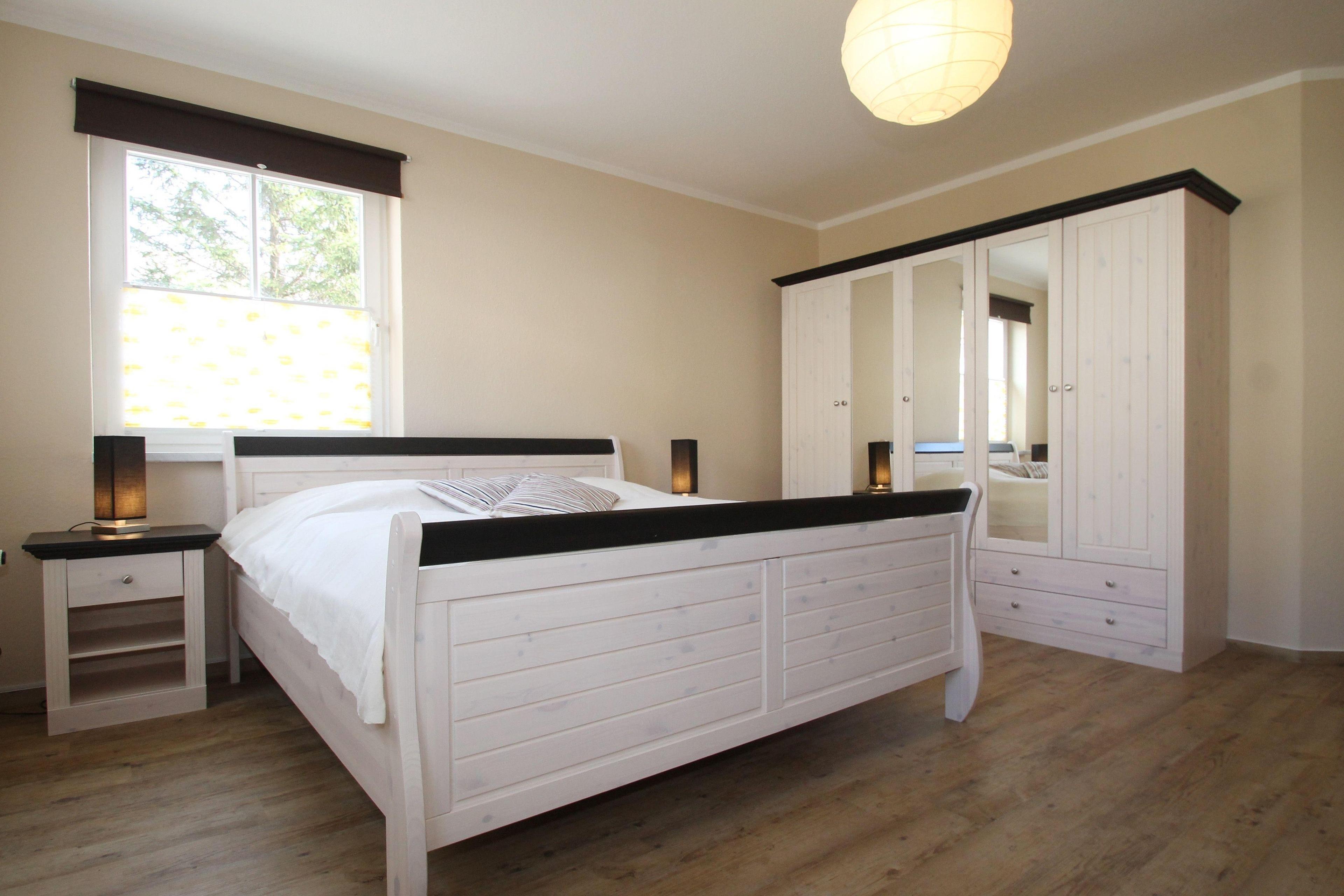 Das erste Schlafzimmer ist mit einem Doppelbett und einem zusätzlichen Doppelstockbett ausgestattet. Auch ein geräumiger Kleiderschrank für Ihre Urlaubsgarderobe steht für Sie bereit. Das Aufstellen eines der Kinderbetten stellt kein Problem dar.