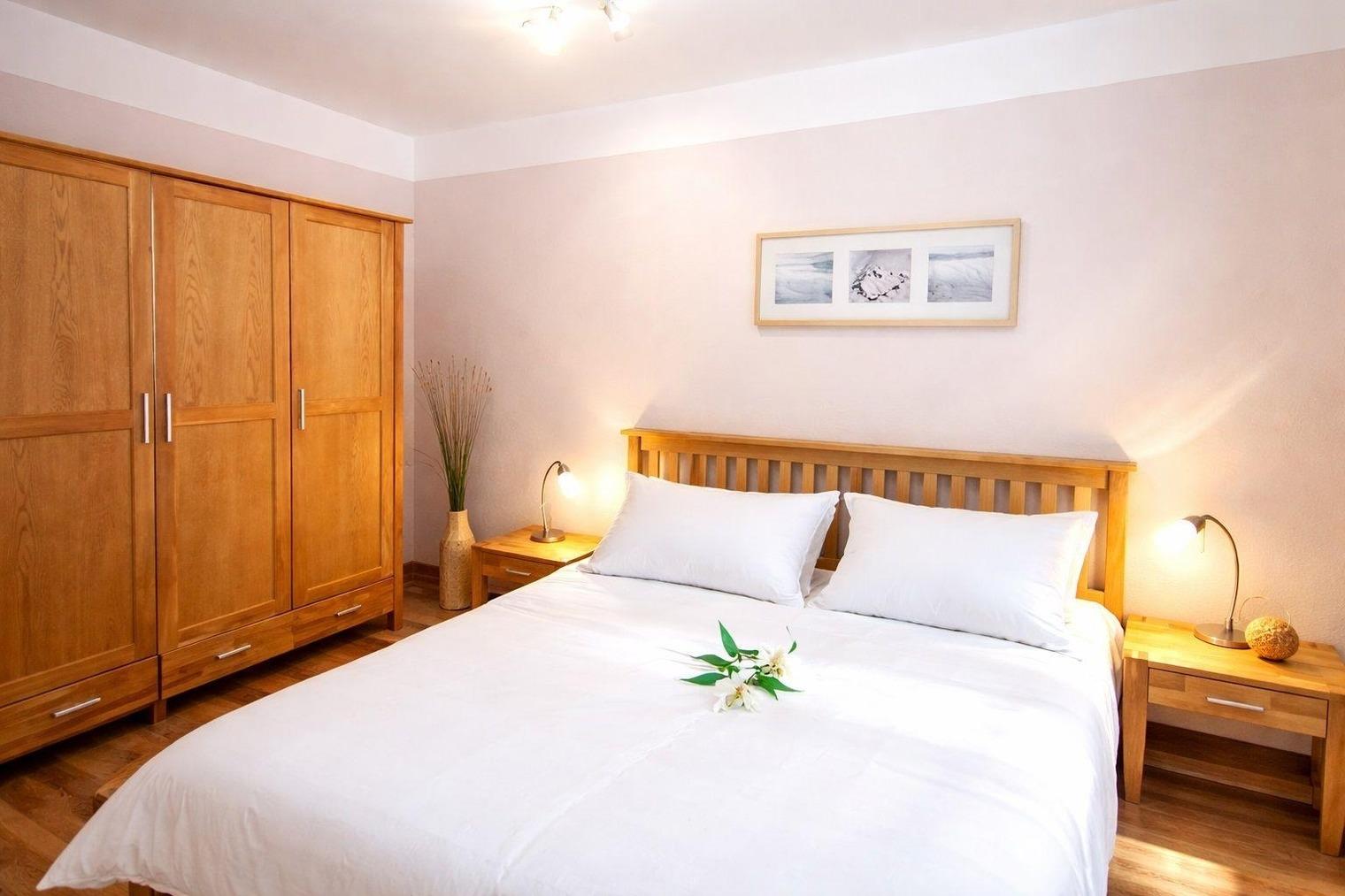 Im ansprechend dekorierten Schlafzimmer steht Ihnen ein bequemes Doppelbett zur Verfügung, hier ist ein erholsamer Schlaf garantiert, so dass Sie gerüstet sind für einen weiteren erlebnisreichen Tag.