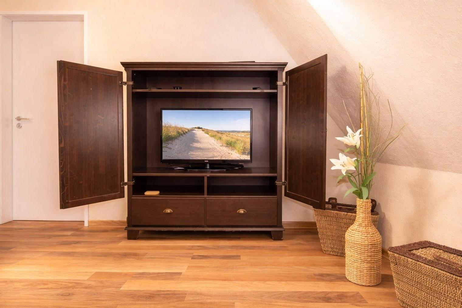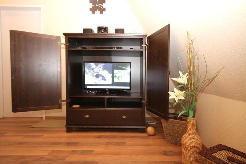 In dem vorhandenen geräumigen Kleiderschrank können Sie bequem Ihre Urlaubsgarderobe verstauen.