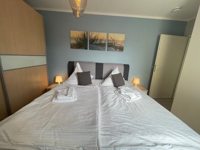 Im Schlafzimmer werden Sie erholsamen Schlaf erleben, und der große Kleiderschrank bietet ausreichend Platz für Ihre Urlaubsgarderobe. Die Matratzen wurden 2025 erneuert.