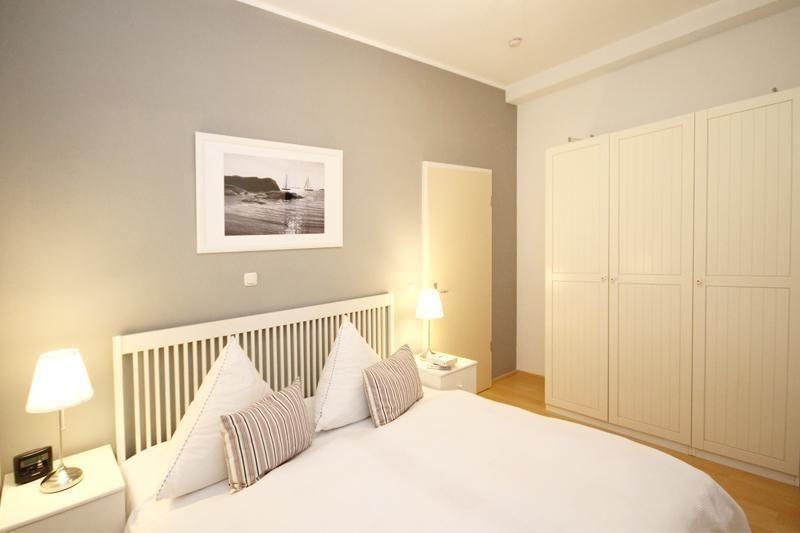 Im separaten Schlafzimmer finden Sie ein komfortables Doppelbett und einen geräumigen Kleiderschrank. Auf den hochwertigen Matratzen ist ein erholsamer Schlaf garantiert.