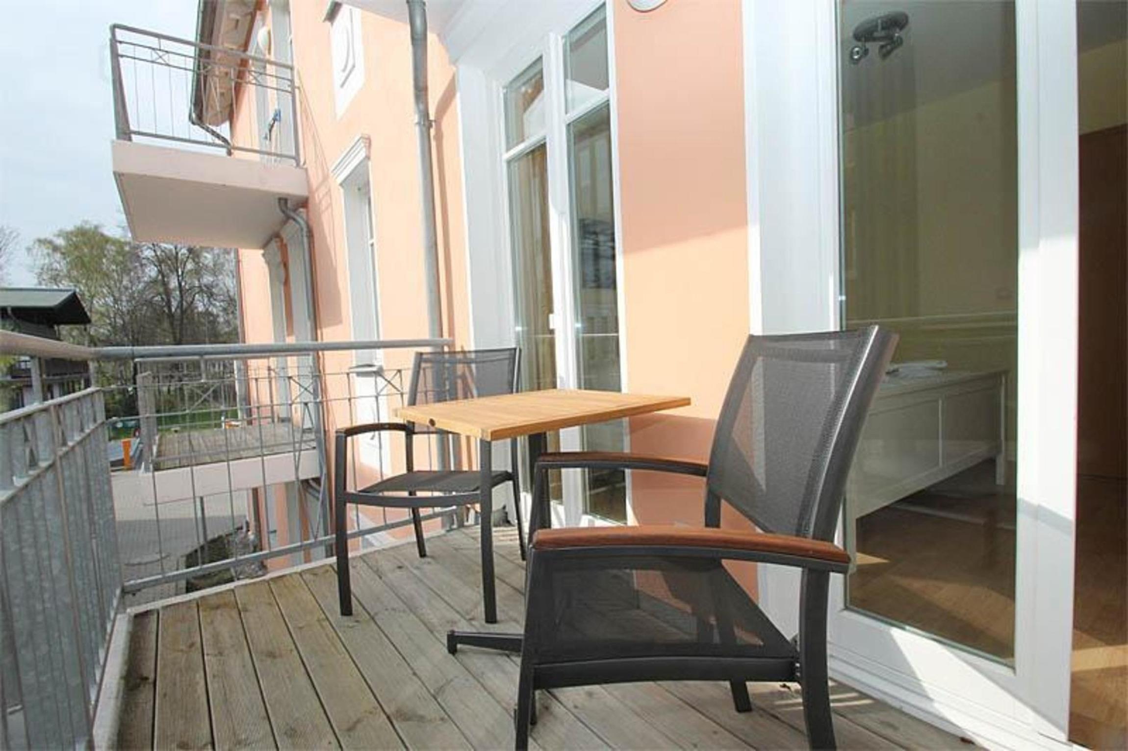Während Sie es sich auf den modernen Balkonmöbeln gemütlich machen, können Sie live das faszinierende Flair der Kühlungsborner Strandstraße erleben, den seitlichen Blick auf das Meer und die Sonne genießen.