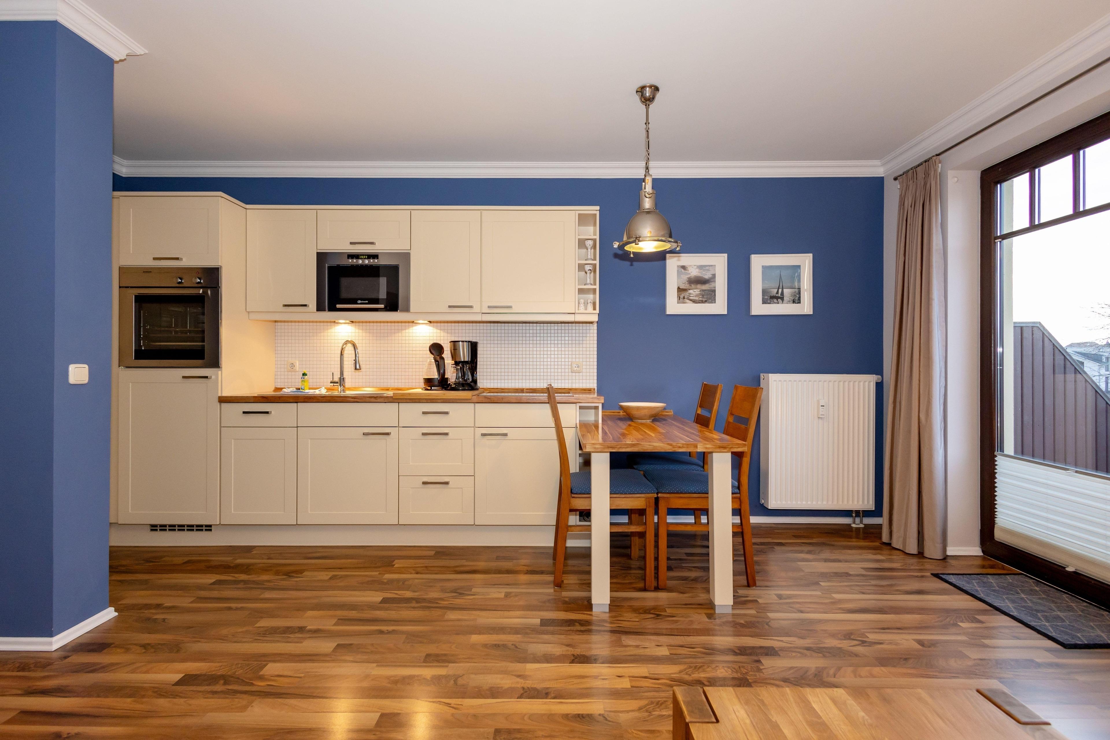 Vom 6 qm großen Westbalkon können Sie den Ausblick auf den Yachthafen und das Meer genießen. Bequeme Flechtmöbel laden auf dieser Wohlfühloase zum Verweilen und Relaxen ein, so macht es Spaß, in geselliger Runde bei einem leckeren Getränk die Abendsonne zu genießen. Lassen Sie hier die Seele baumeln, der Alltagsstress ist schnell vergessen!