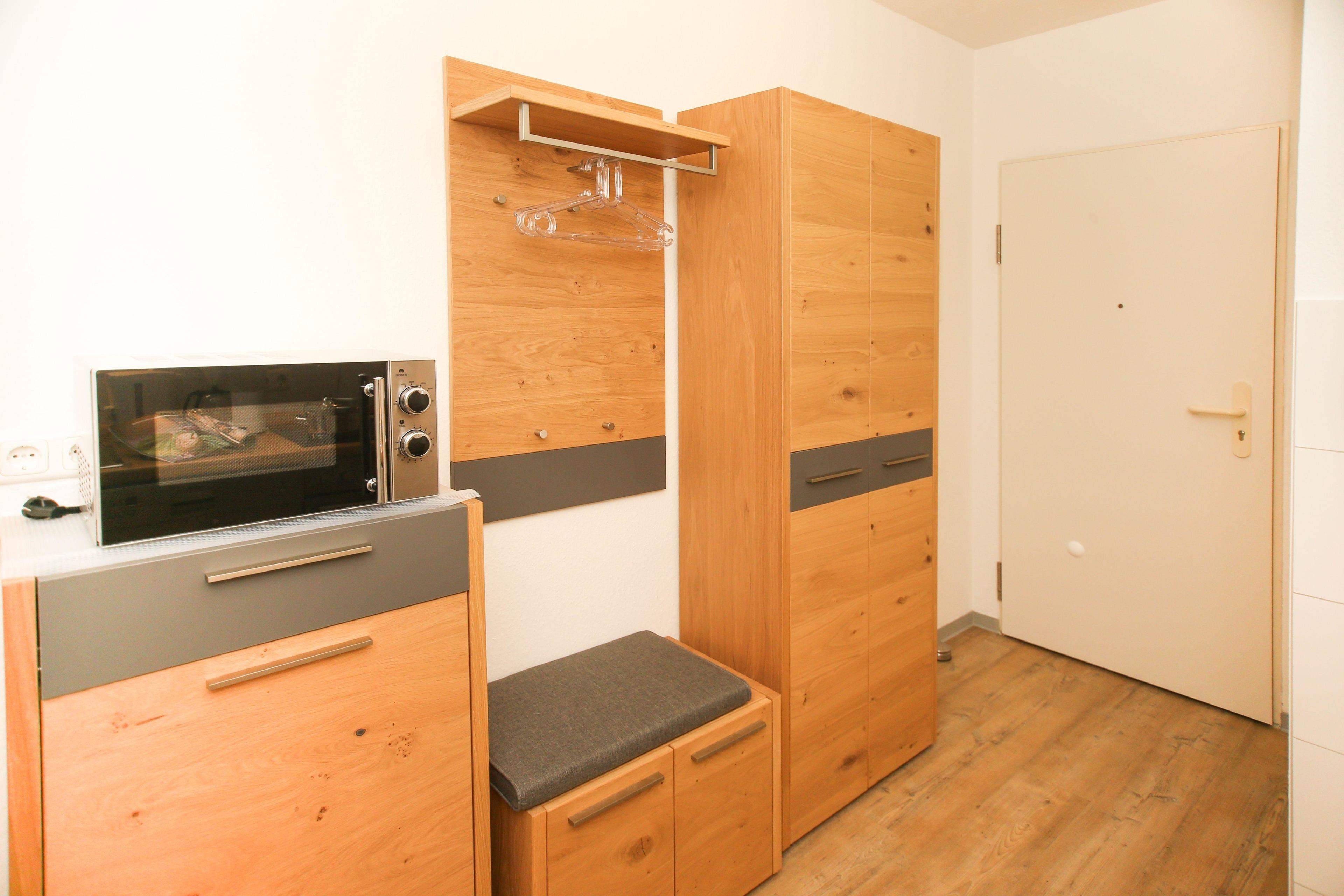 Eine Gaderobe steht Ihnen im Eingangsbereich zur Verfügung.
