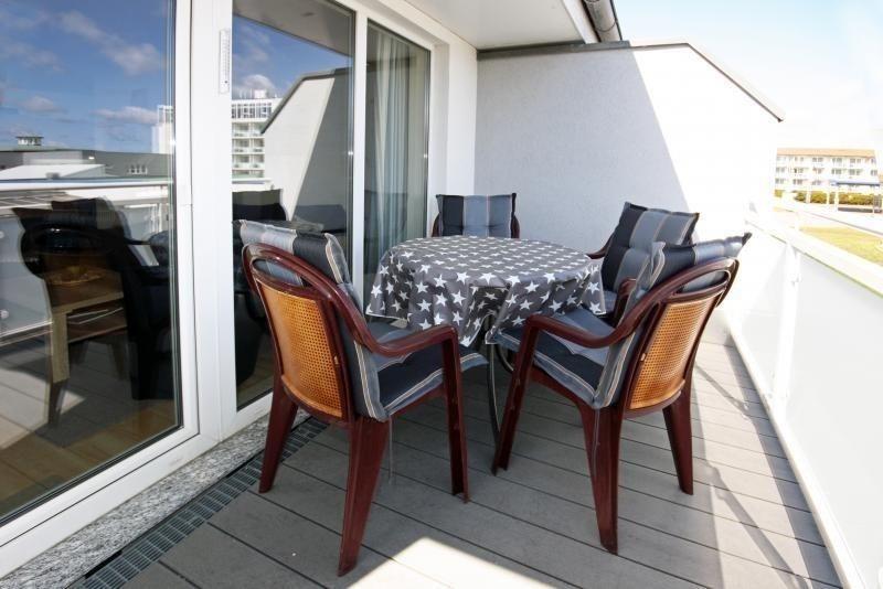 Gönnen Sie sich eine Ruhepause auf dem ansprechenden Balkon, der zur Nordseite ausgerichtet ist. Hier erwartet Sie eine kleine Wohlfühloase, ausgestattet mit hübschen Balkonmöbeln. Gemeinsam relaxen und am Abend einen ereignisreichen Tag gemütlich bei einem leckeren Getränk ausklingen lassen - so sieht der perfekte Urlaub aus!