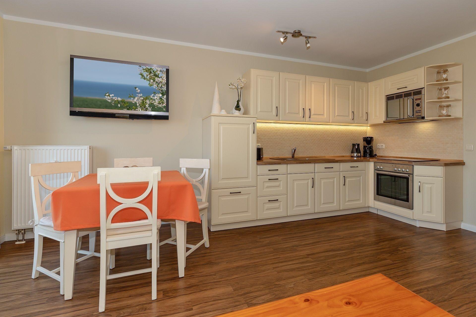 Der angrenzende offene Wohn-Küchenbereich lässt keine Wünsche offen und sorgt durch seine liebevoll dekorierte, gehobene Austattung für angenehme Stunden.