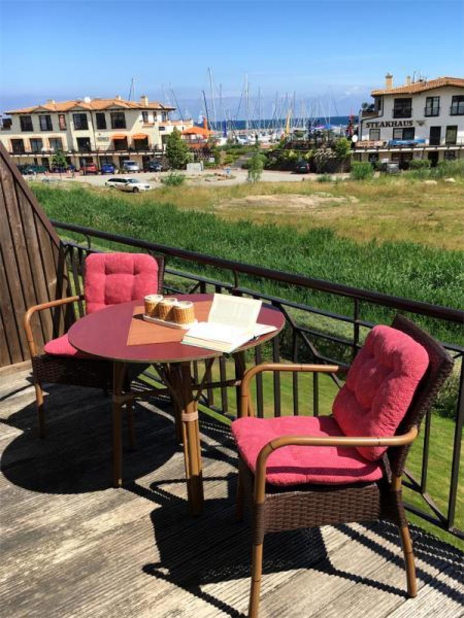 Mediterranes Apartment mit Meerblick und Yachthafen in Kühlungsborn, ideal für entspannte Urlaubstage am Strand.