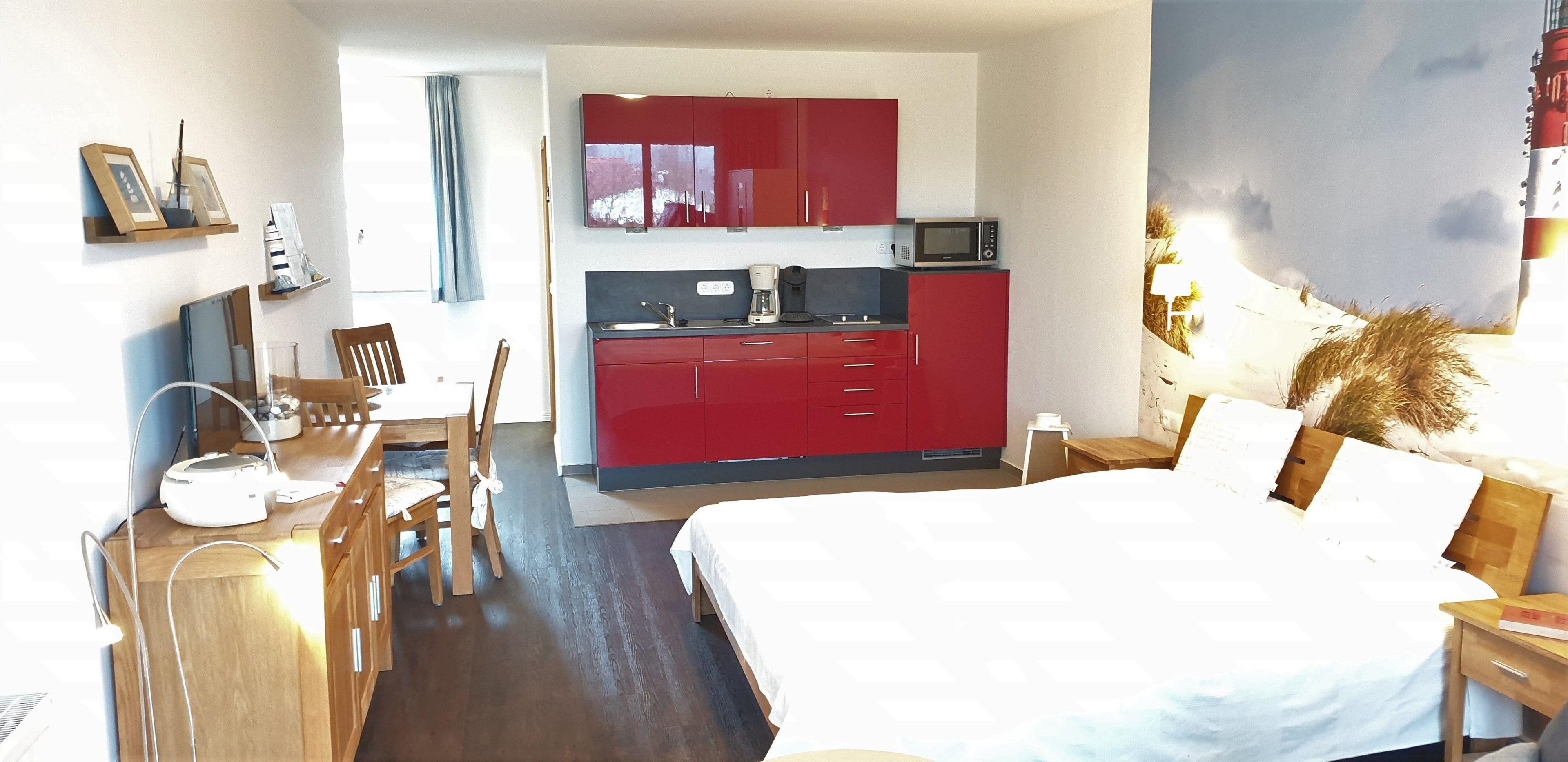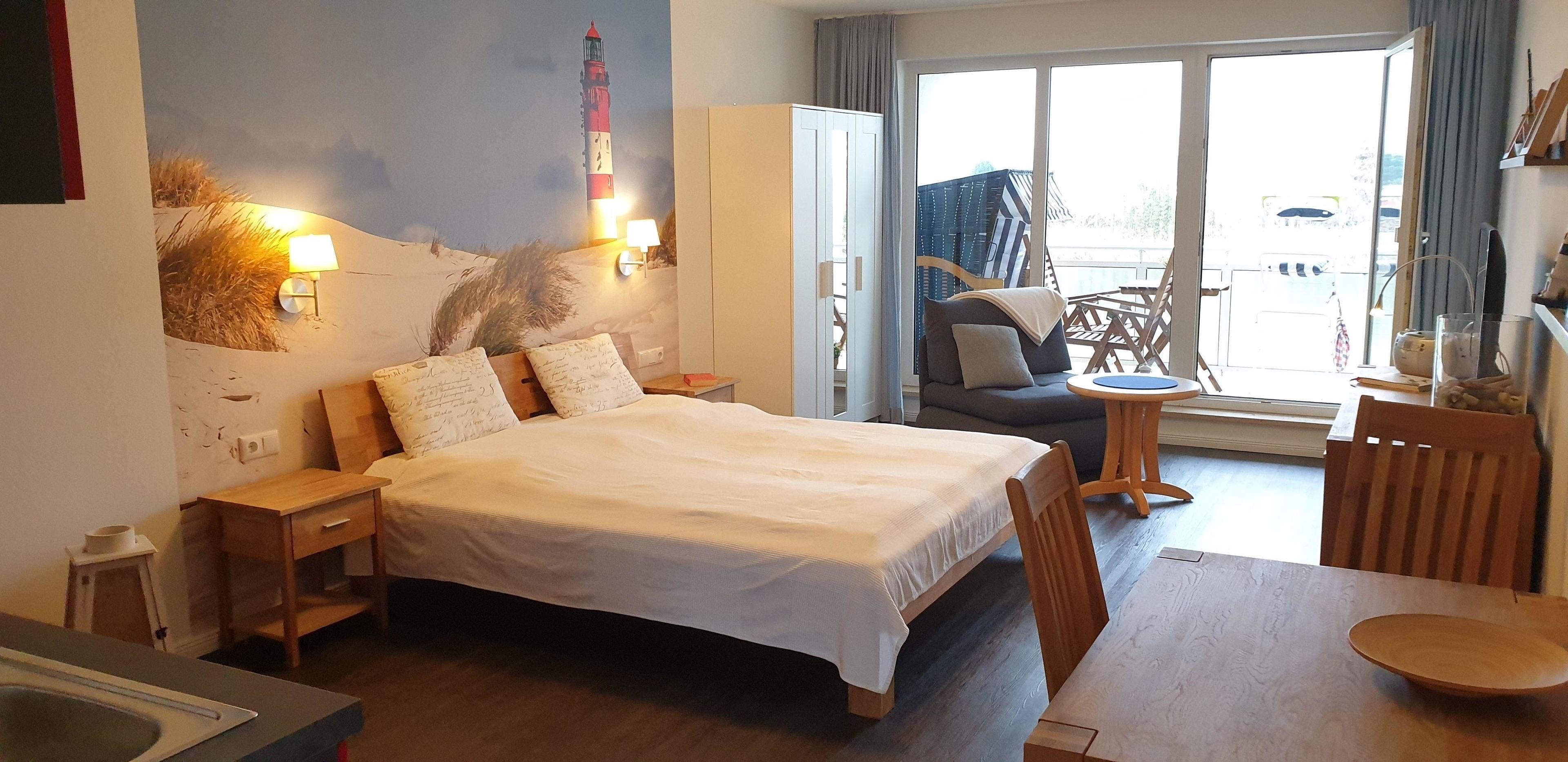 Das charmante 1-Zimmer-Apartment in der ersten Etage verfügt über 36 qm Wohnfläche, 2 Erwachsene und ein Kind bis 15 Jahre können hier erholsame Urlaubstage verbringen.
