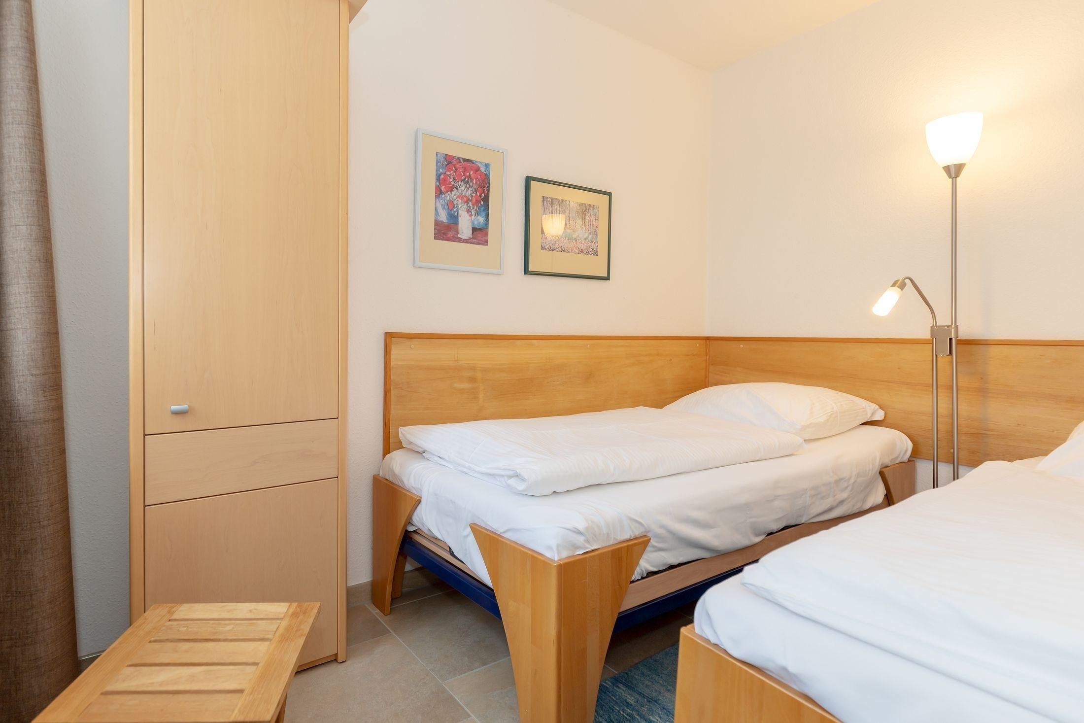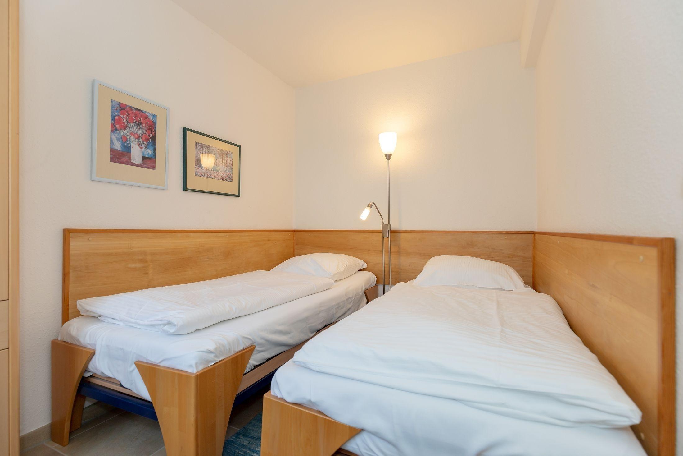 Im zweiten Schlafzimmer befinden sich zwei Einzelbetten.