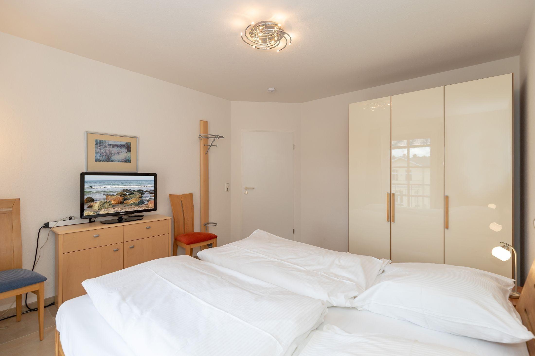 Das erste Schlafzimmer verfügt über ein großzügiges Doppelbett mit hochwertigen Matratzen. Ein erholsamer Schlaf ist garantiert. Ein weiteres LCD-Gerät rundet die Gemütlichkeit im Schlafbereich ab.
