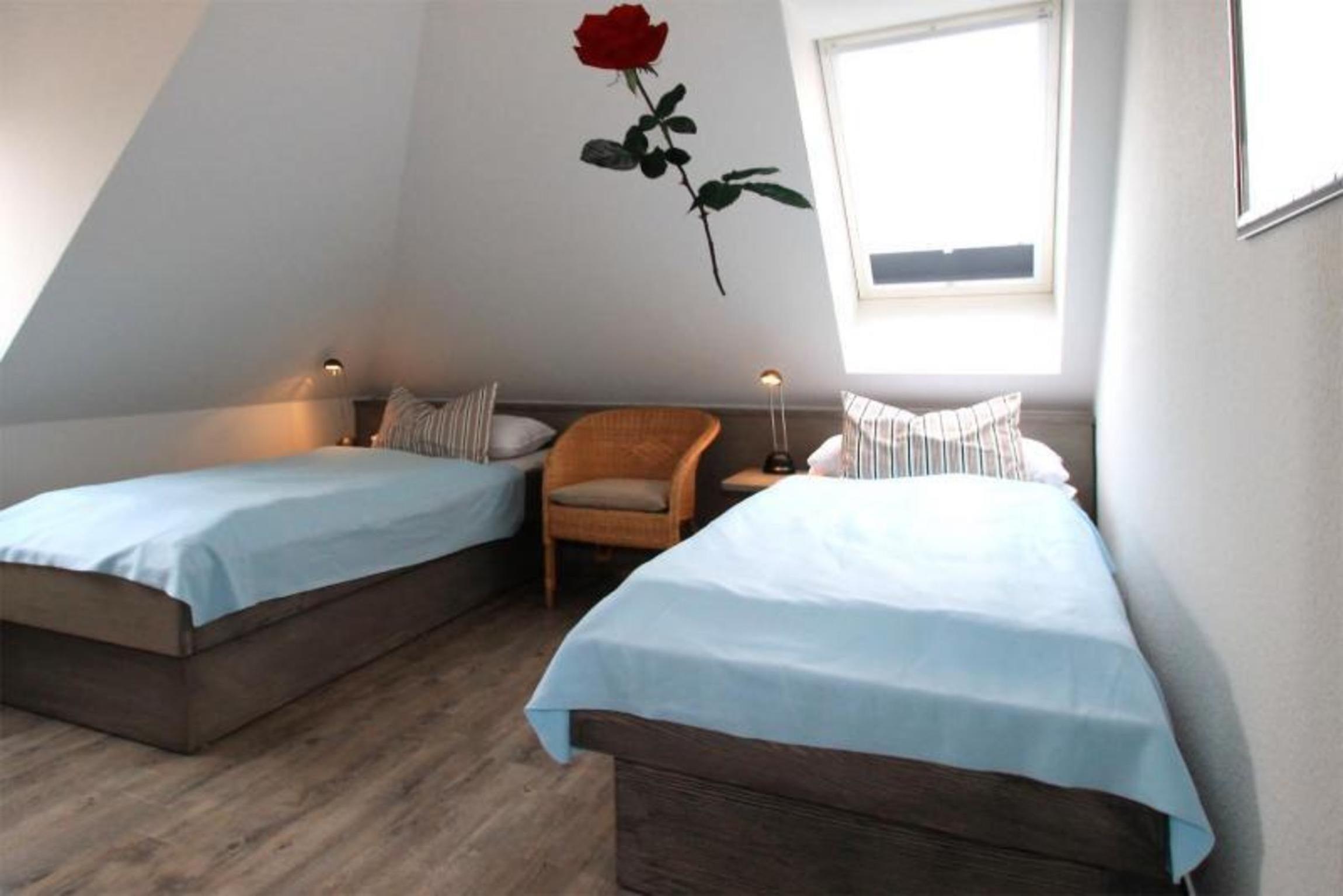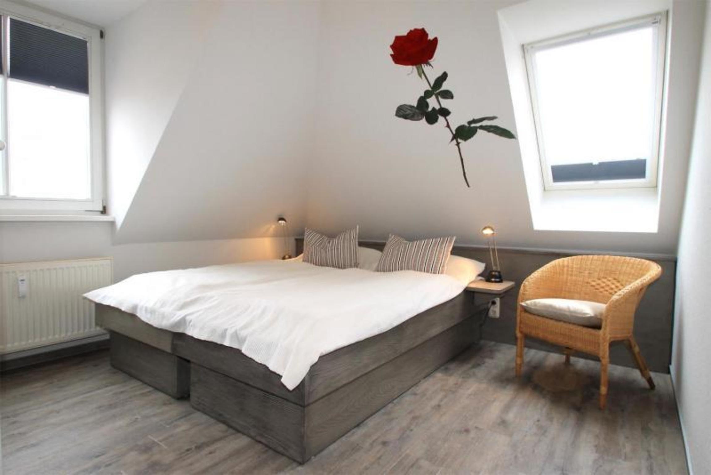 Die beiden sehr geschmackvoll möblierten Schlafzimmer verfügen jeweils über ein bequemes Doppelbett, wobei im zweiten Zimmer die Betten auch getrennt stellbar sind.