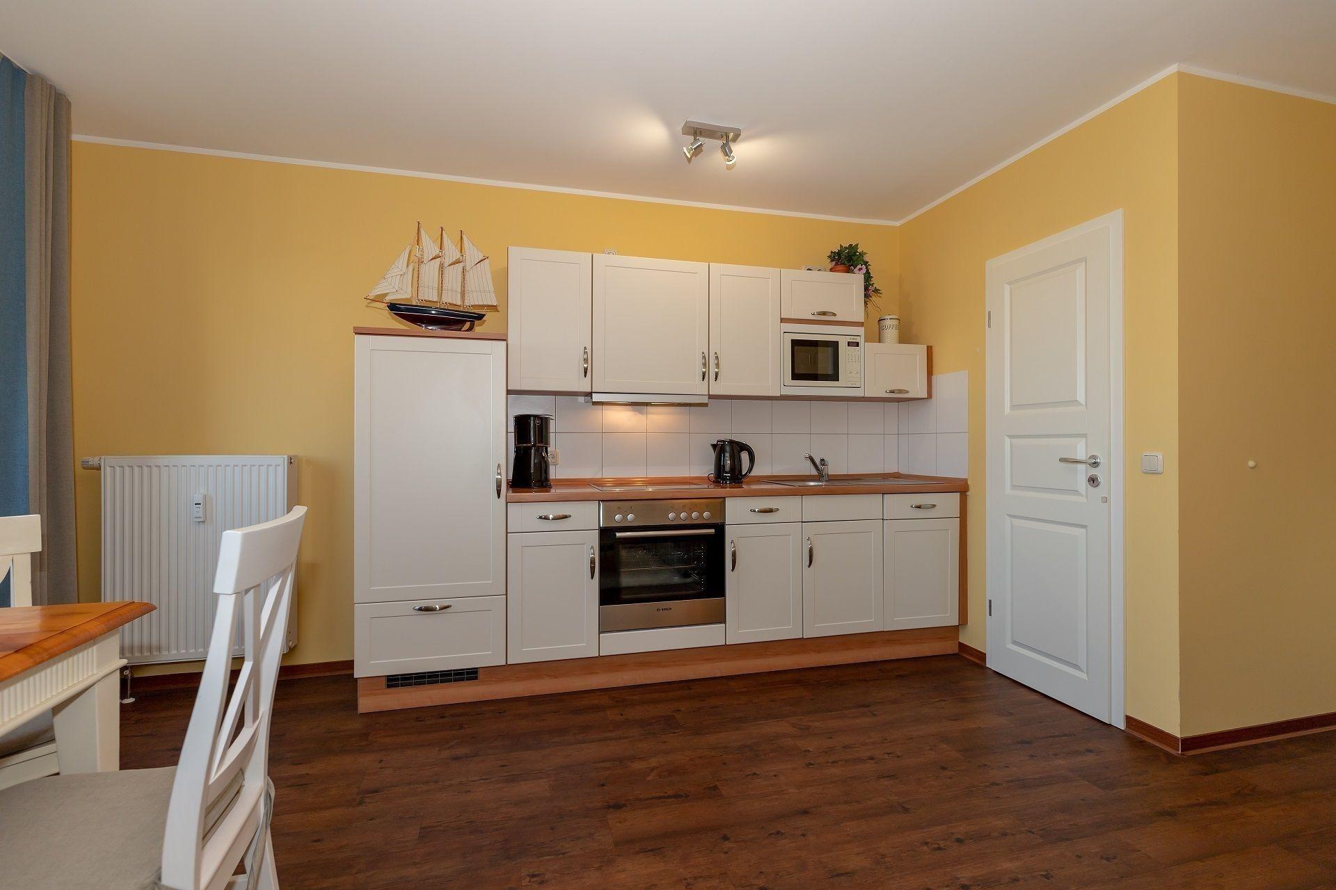 Die Wohnung verfügt über einen Nord-Balkon. Von hier aus haben Sie einen fantastischen Blick auf die Hafenterrassen, den Yachthafen und natürlich auf die Ostsee! Lassen Sie hier bei einem leckeren Getränk die Seele baumeln und einen ereignisreichen Tag gemeinsam gemütlich ausklingen.