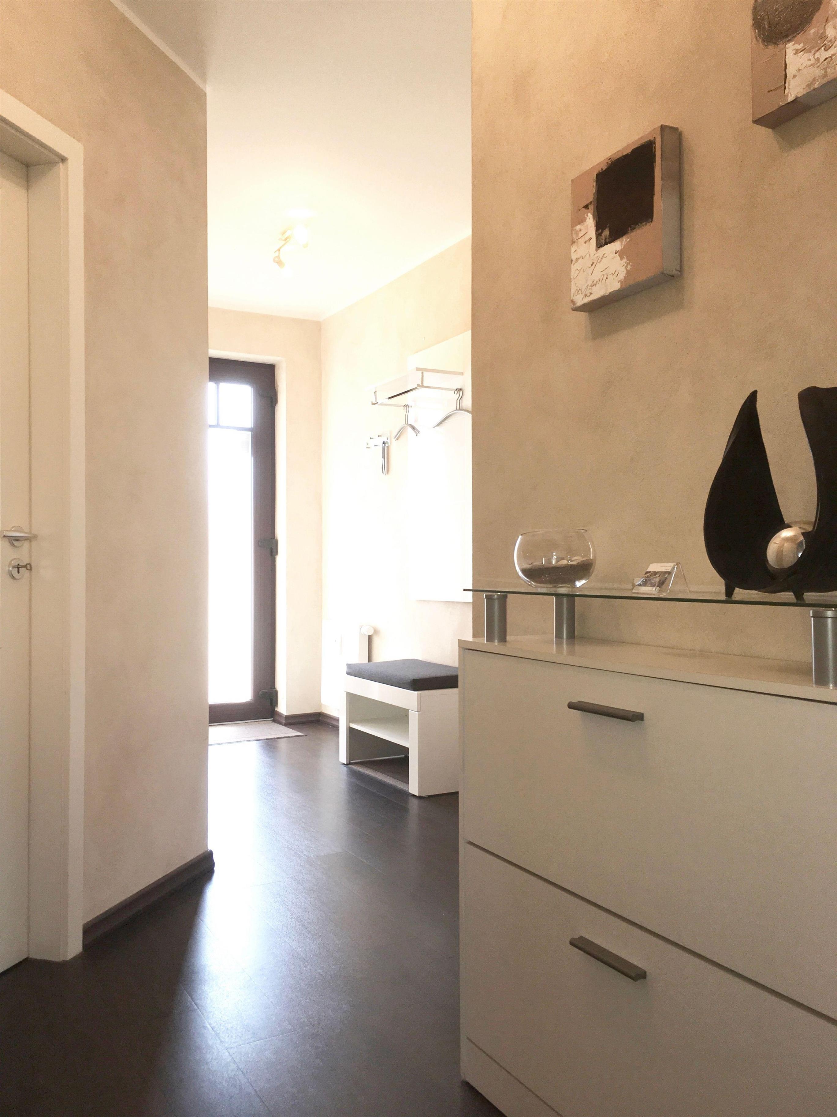 Im Flur steht Ihnen eine Garderobe mit einem großen Spiegel und einem Schuhschrank zur Verfügung.